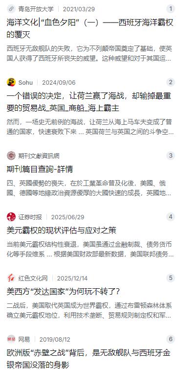 你看这历史是不是惊人的相似?西班牙、荷兰、英国,再到今天的美国,这几个昔日的霸主倒下去,原因翻来覆去就那么几条:要么是钱来得太容易,要么是光想着靠武力欺负人,要么是脱离了实体生意,光玩虚的。现在这个世界,早就不是谁拳头大谁说了算的时代了,多极化越来越明显。美国要是不吸取点教训,还是这么一味地靠借钱过日子、靠大棒吓唬人,恐怕也很难跳出这个“百年霸主”的周期律。