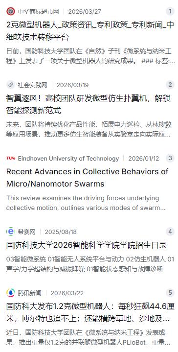 从技术背景来看,国防科技大学在微纳机器人领域深耕已久。早在去年6月,就有军事报道透露他们已成功研发蚊子大小的仿生机器人。而根据今年发布的招生目录,智能科学学院更是明确设立了“微纳制造与智能传感器”和“微纳机器人”等研究方向,这说明这项技术不是实验室里的昙花一现,而是有着完整的人才培养和科研体系支撑的,正在从实验室走向实际应用。