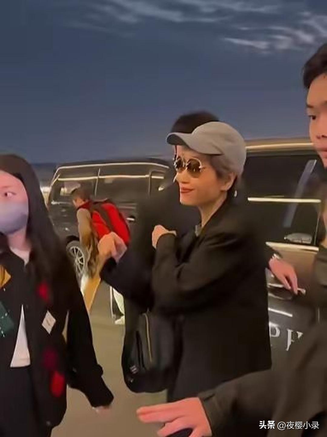叶童从成都乘坐飞机回香港,戴上灰色棒球帽的叶童变身帅哥型男![大金牙][大金牙]