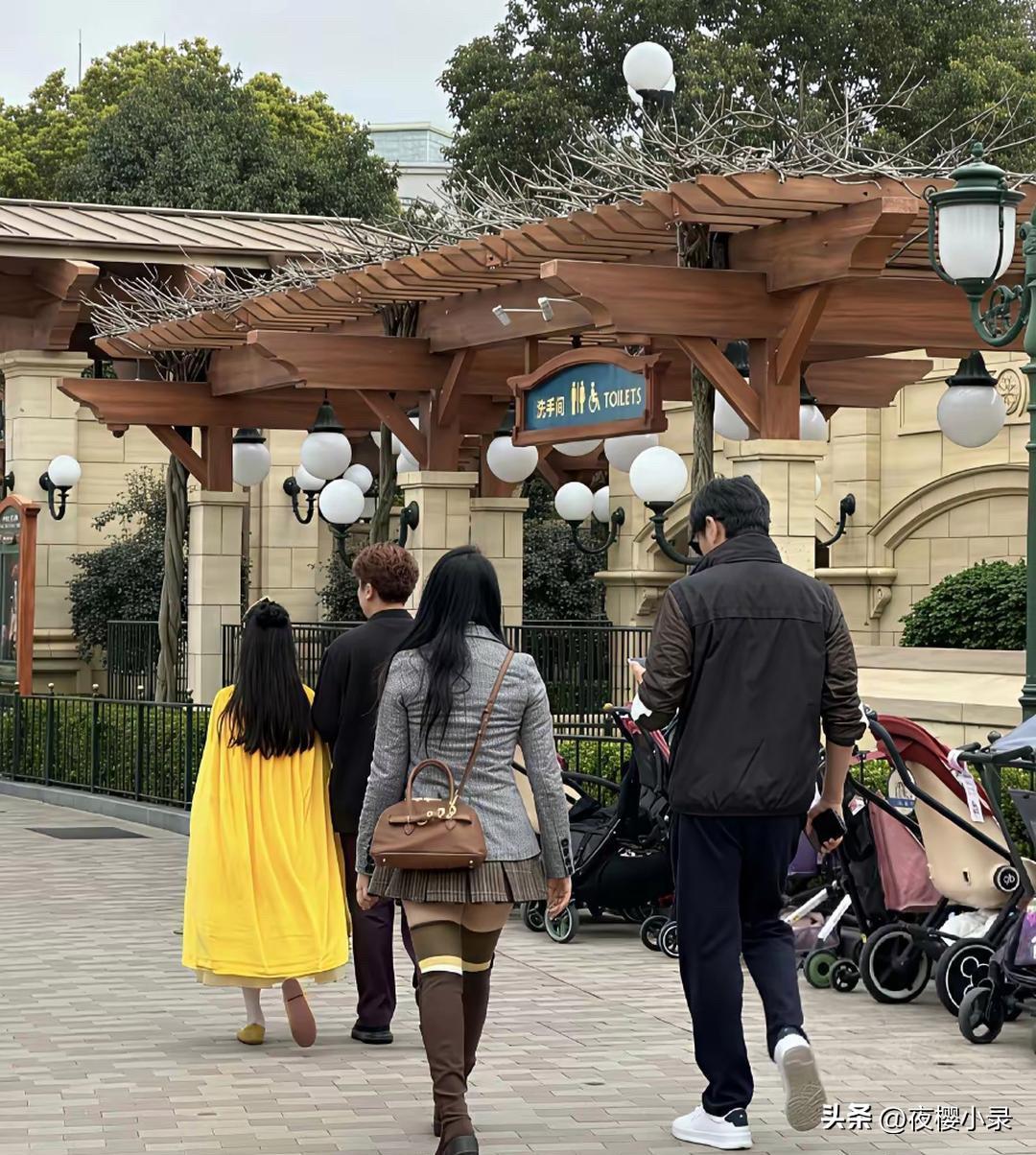 伊能静与秦昊牵手逛上海迪士尼,伊能静衣服小了,秦昊白头发好多,伊能静拒绝路人合影