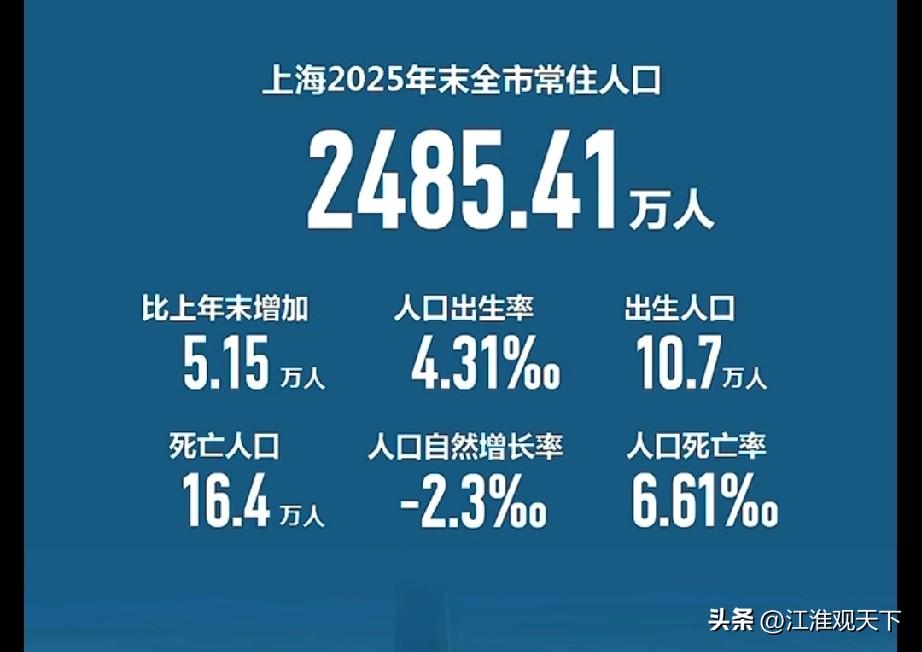 3月30号,上海市公布2025年末常住人口数据,全市人口2485.41万人,同比2024年末,人口增加了5.15万人。