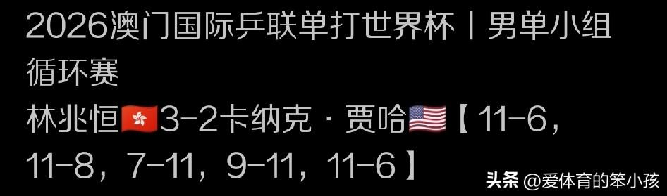 比如来自中国香港的林兆恒,作为替补林诗栋参加这次男单世界杯的球员,在首轮面对来自美国的名将卡纳克-贾哈时,就打出了不错的竞技状态和竞争力,而且场上作风顽强,在双方战满五局的情况下还是实现了3:2的险胜。此役双方五局具体比分是:11:6,11:8,7:11,9:11和11:6。