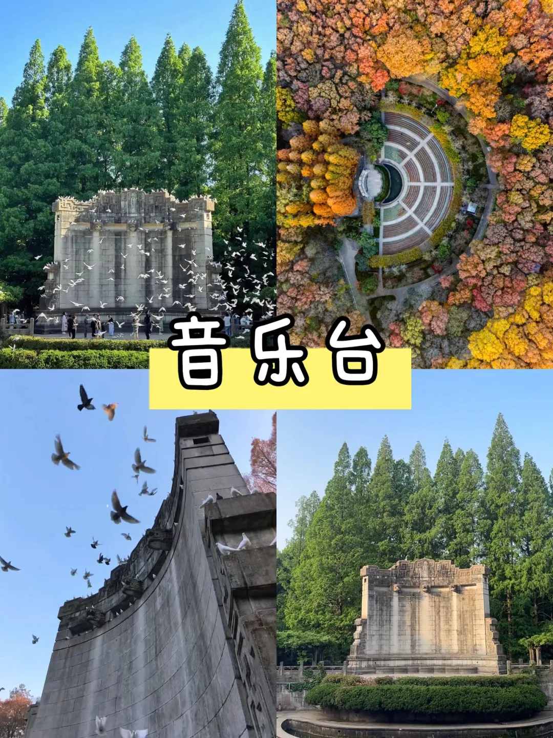 沿着梧桐大道前行,打卡音乐台。半圆形的复古建筑搭配大草坪,成群的白鸽围绕游人飞舞,坐在草坪上吹吹风,非常治愈。