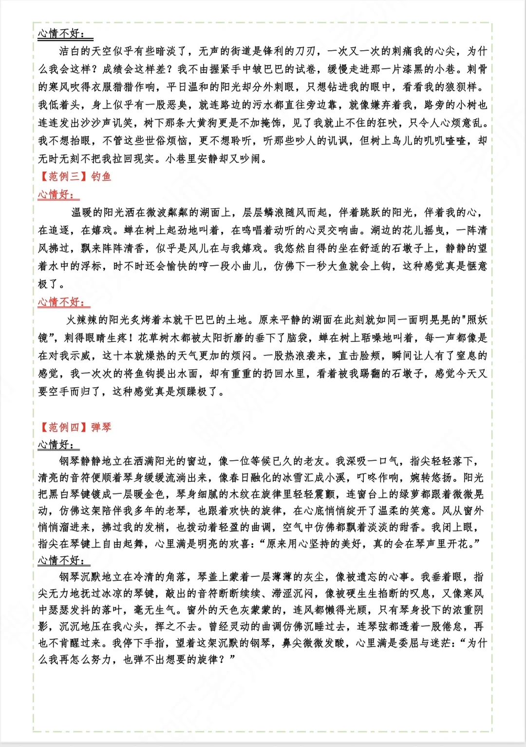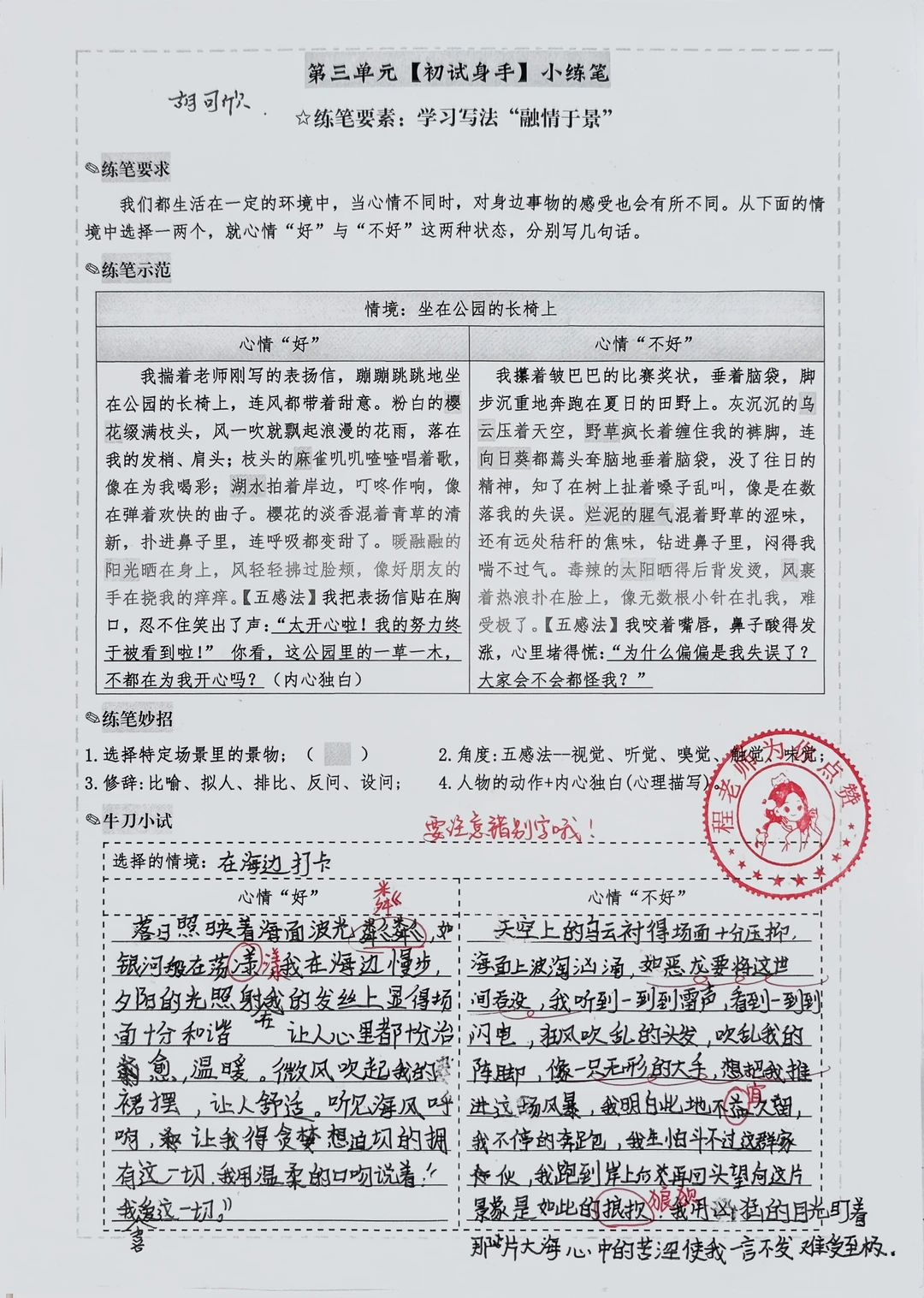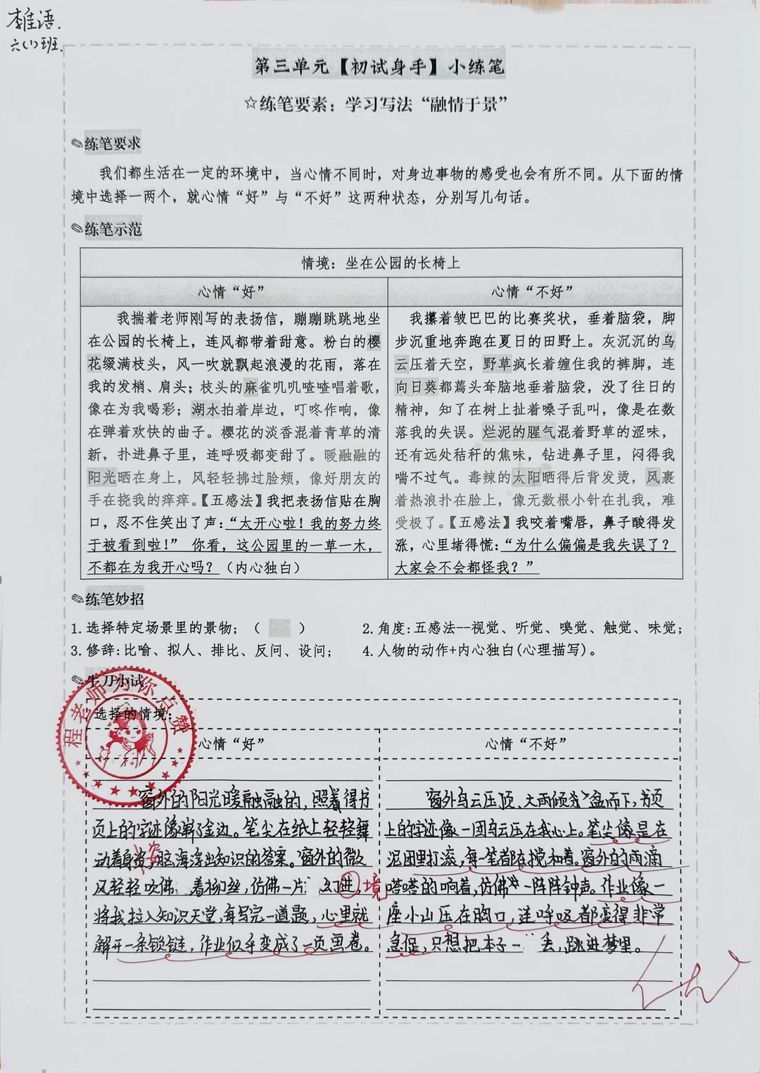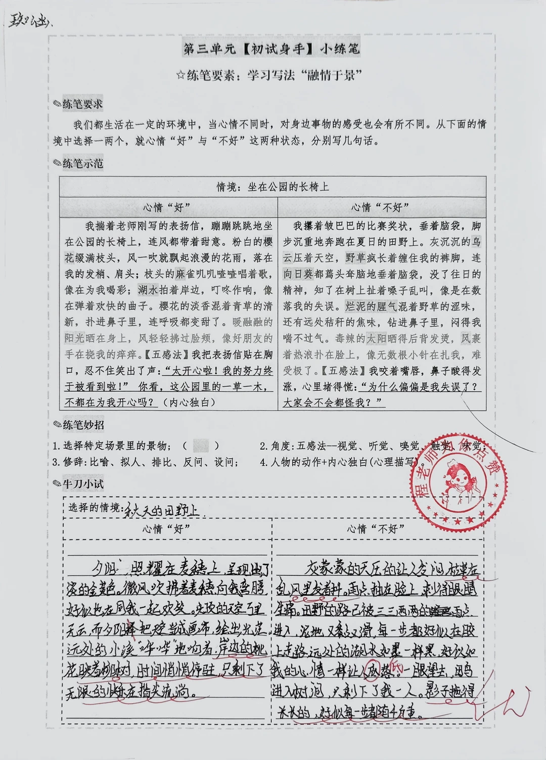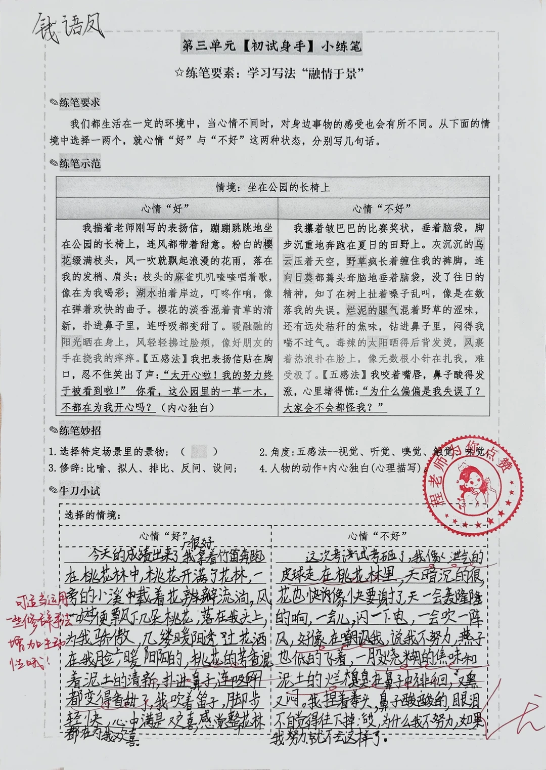 “融情于景”片段仿写心情好与坏|初试身手