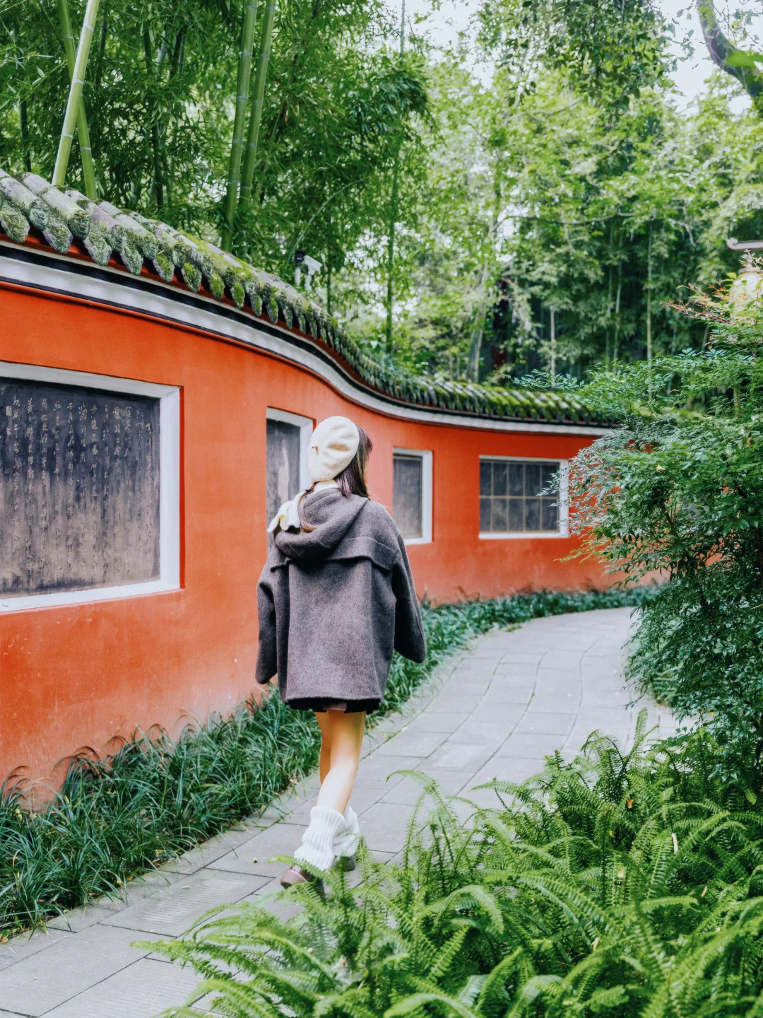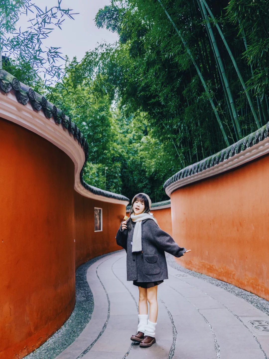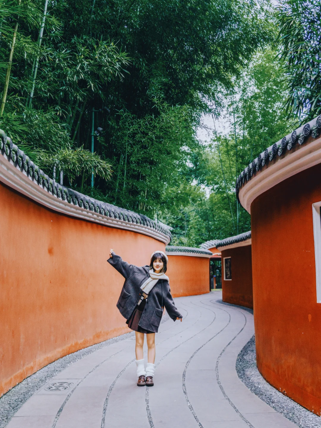 2️⃣P2:北门进入,红墙夹道,进入后,一直走,走过薛涛井,然后看到一个池塘,一个葫芦门进去,就到啦,蜿蜒盘旋,背景是一片竹林,意境感满满!