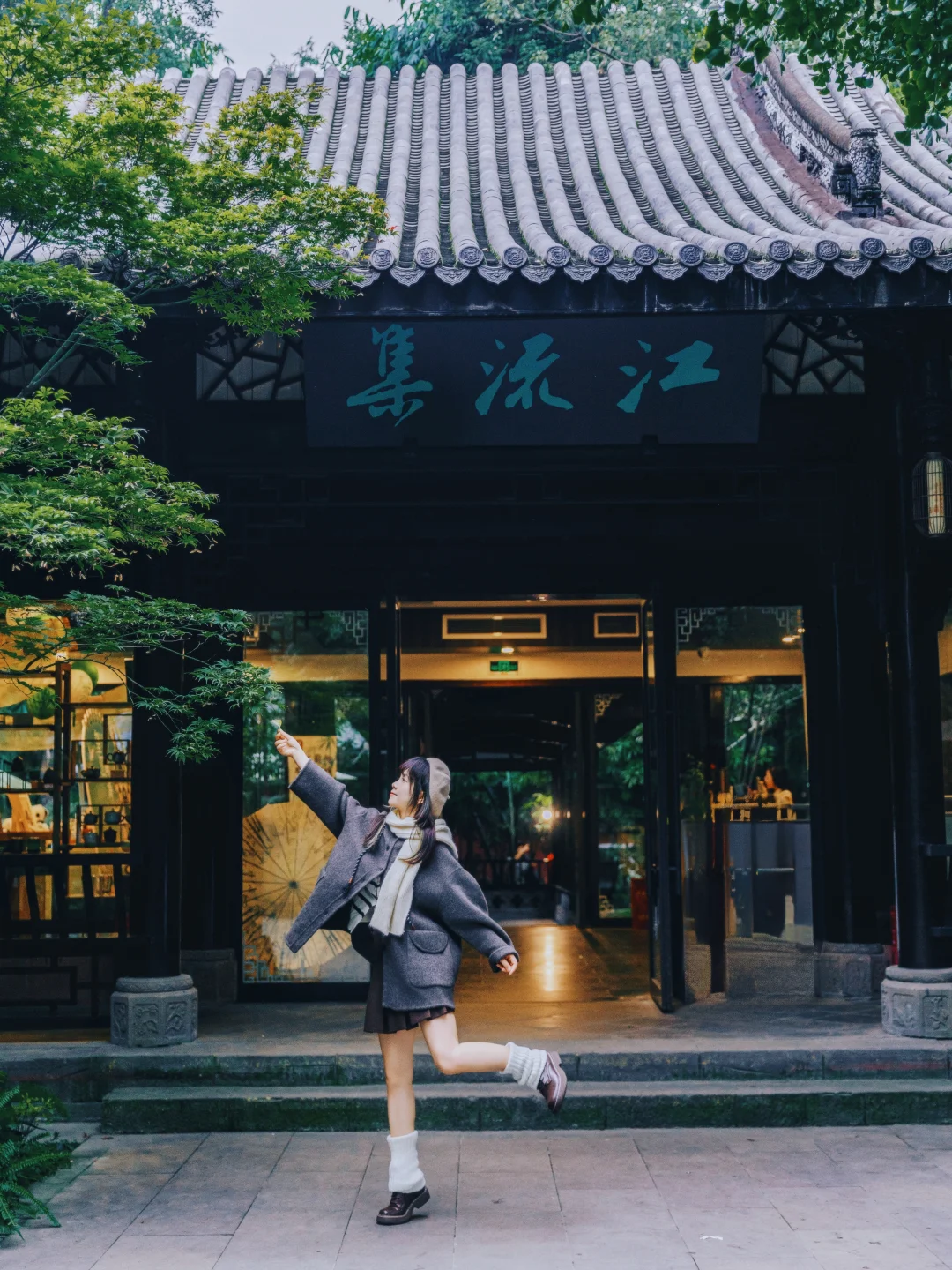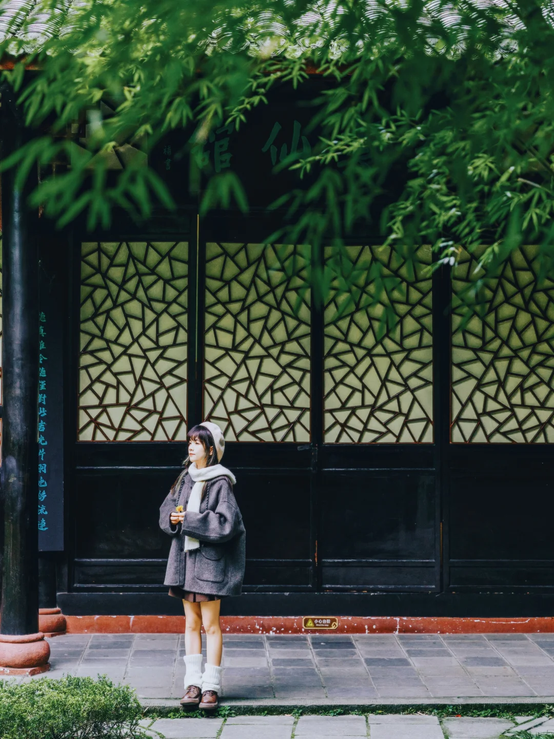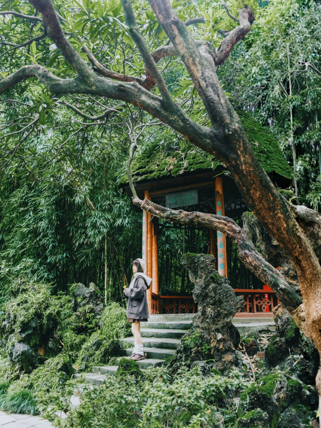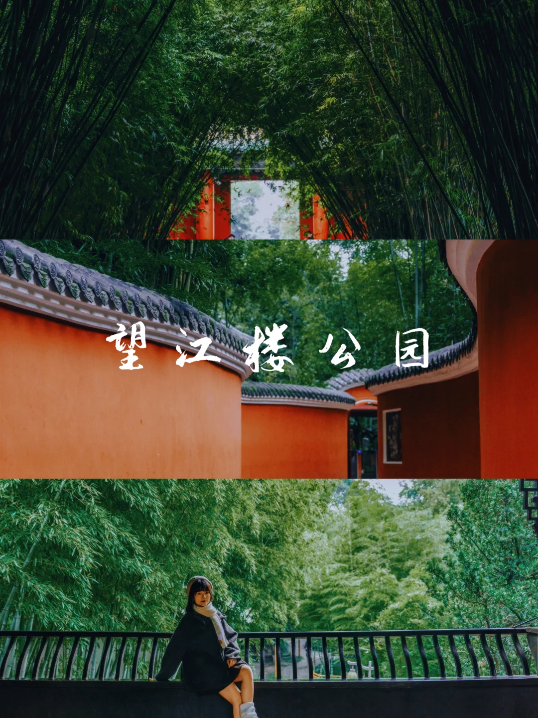 1️⃣P1:北门进入,一直往里走到薛涛井对面的吟诗楼二楼,亭台的窗边,背景是望江楼的竹子,超有氛围感