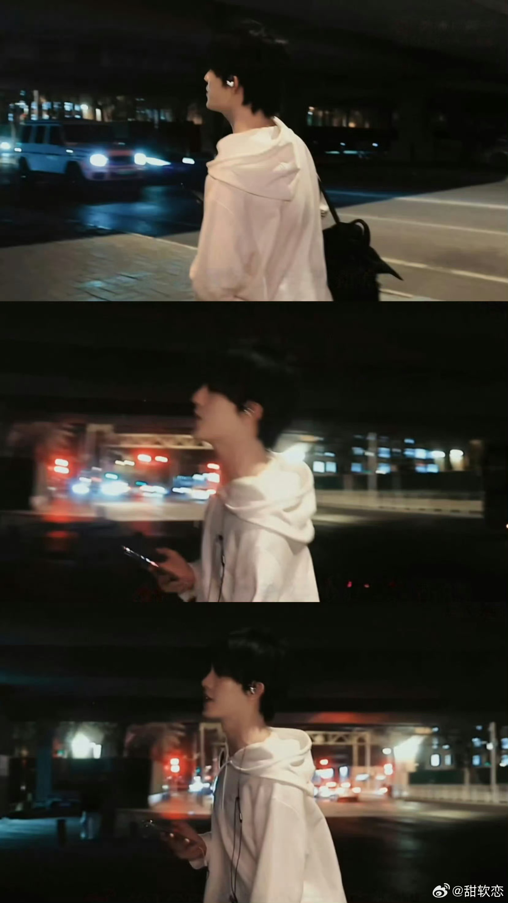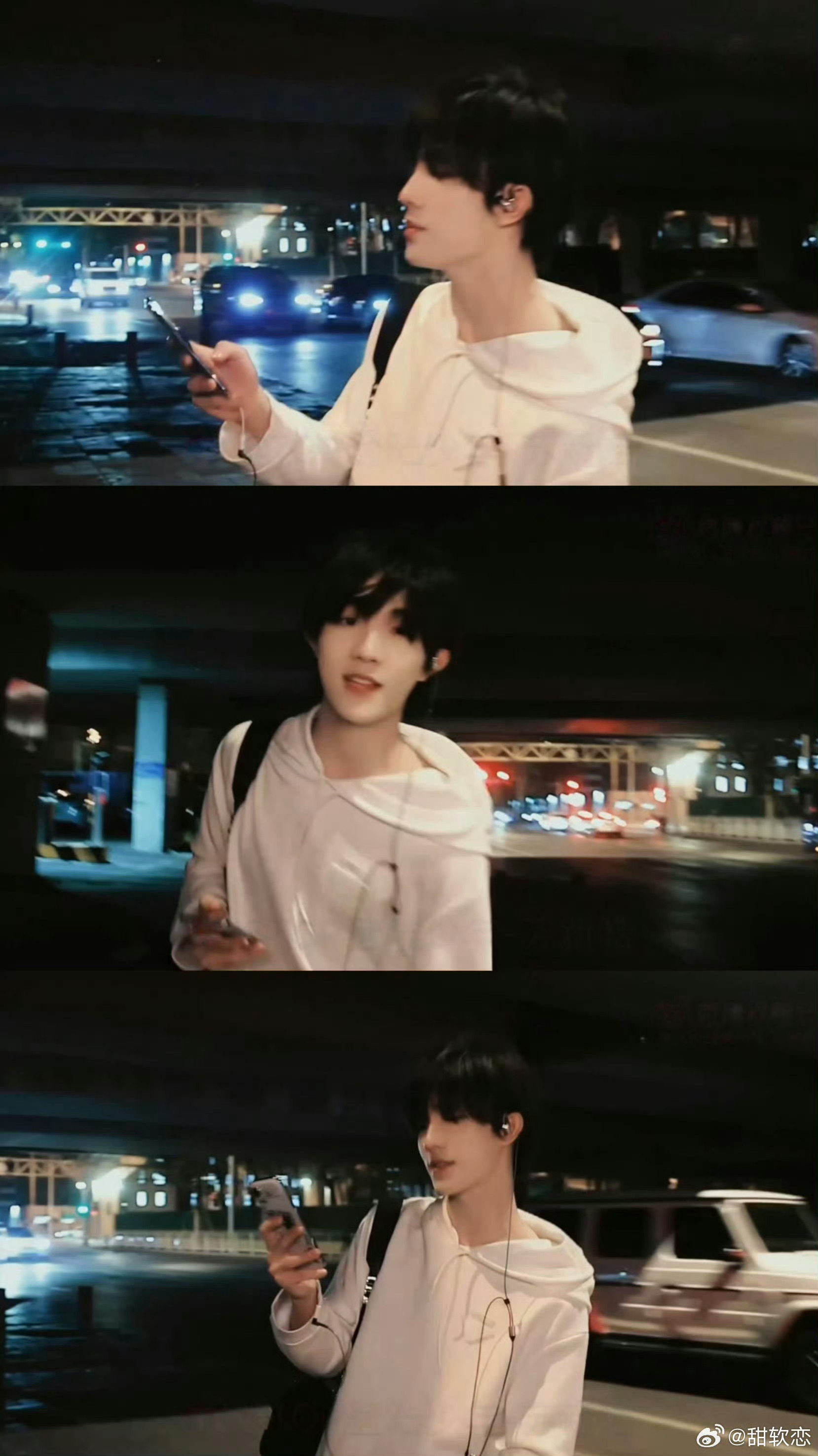松松垮垮的白卫衣,有线耳机,车水马龙的街头,黑色双肩包,干干净净的少年好喜欢好心动