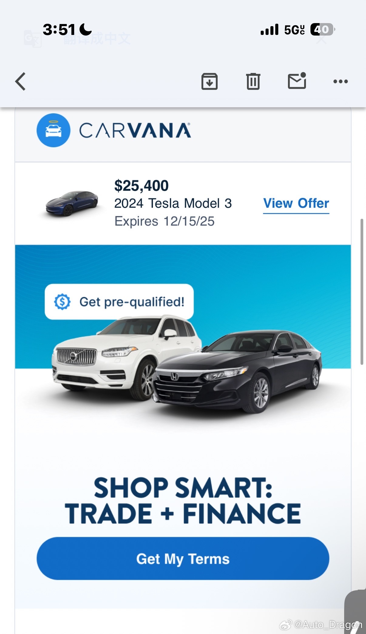 去年12月,我的Model3置换价格在carvana只值2.54万刀,今天值2.98万刀了,新车4.3万美刀。4个月涨了4400美刀,现在多跑了2k英里还升值了,特斯拉不愧是理财产品。