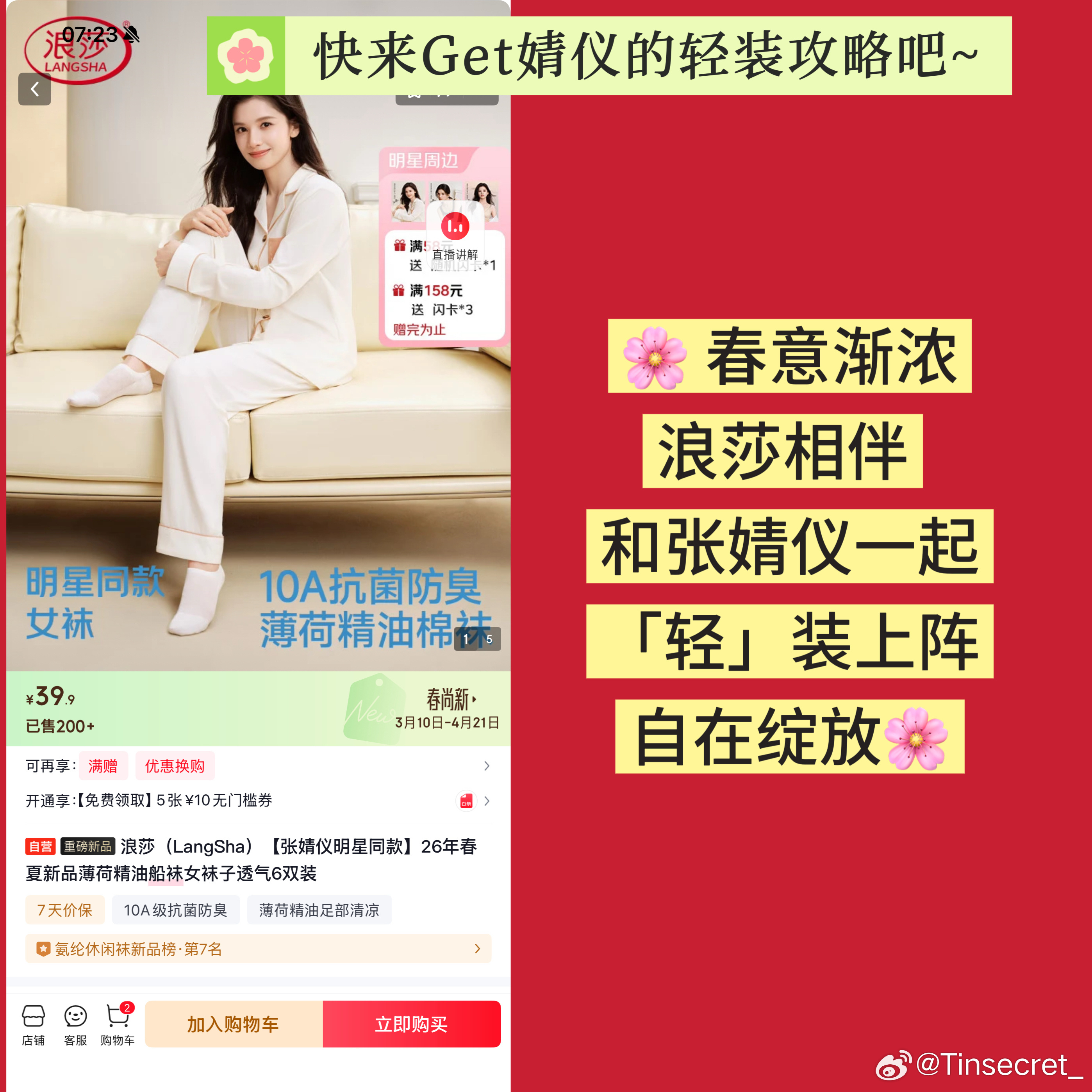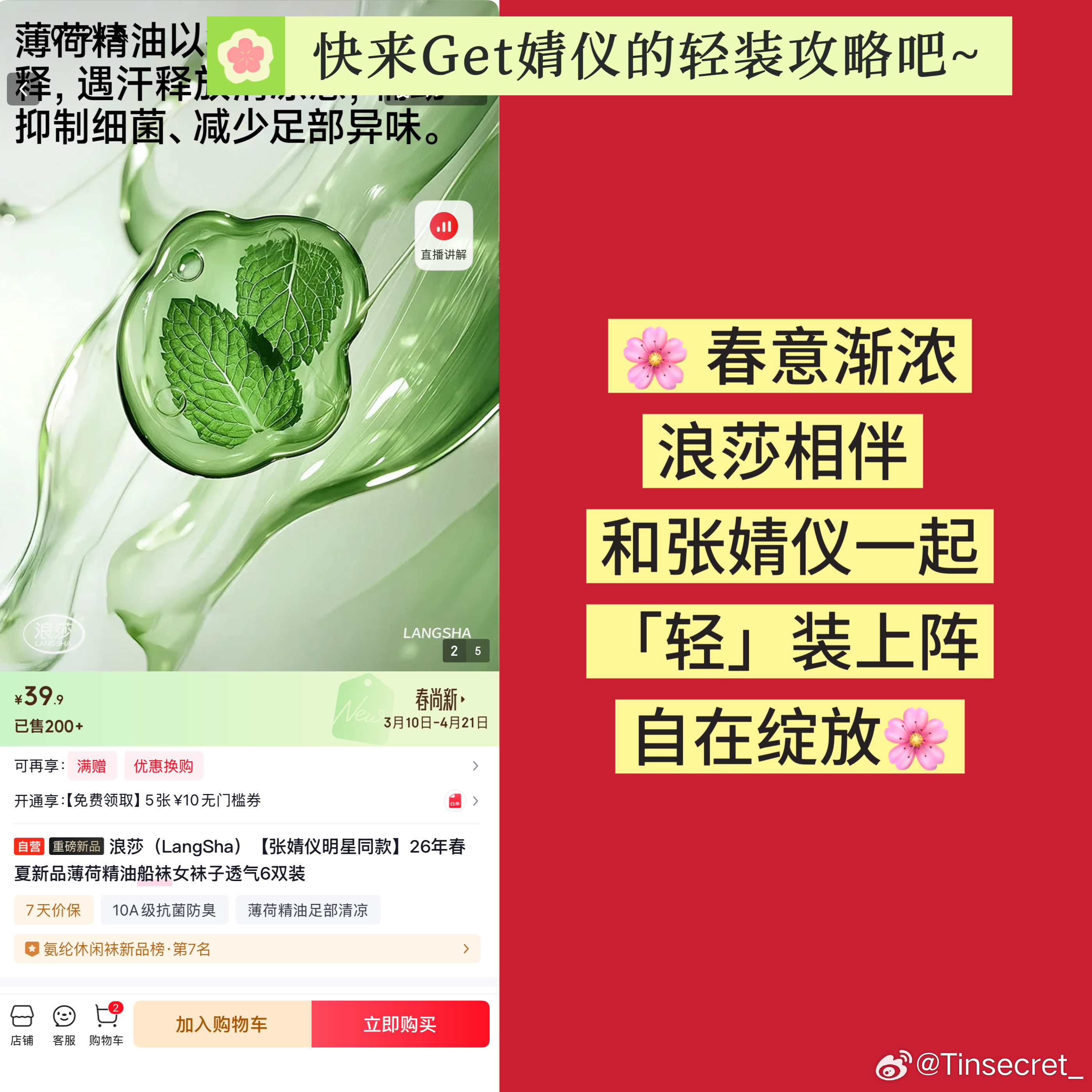这个春天,我也想跟着张婧仪一起,穿上浪莎的“轻”。不是要成为谁眼中的“完美女孩”,只是想让自己在忙碌的日子里,也能有“轻”下来的瞬间——当丝袜贴合肌肤的柔软传来,当脚步不再被束缚,好像真的能听见心里的声音:做自己,原来这么舒服。这大概就是我最向往的状态吧✨