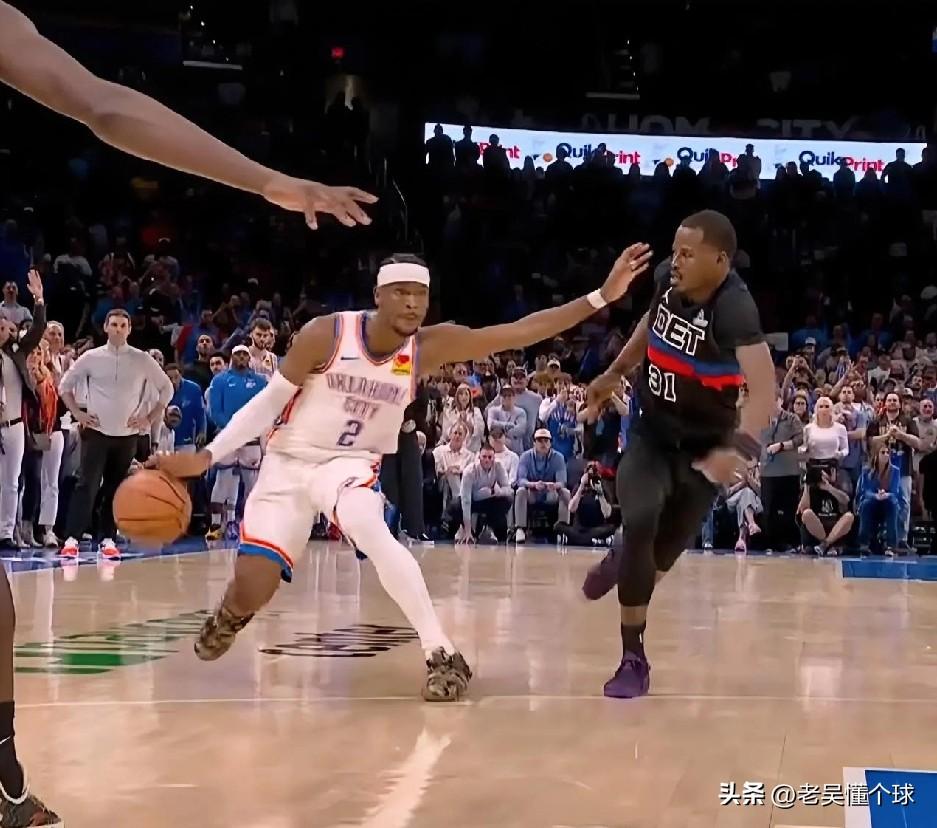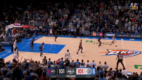 雷霆跟活塞的比赛,打得非常激烈,出现了绝杀回合,一球定胜负的局面,这是常规时间末节的最后几秒钟,双方打平,雷霆球权,亚历山大来操刀这个绝杀球。