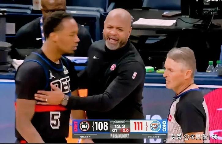 加时赛最后锁定胜局的得分,也是亚历山大上罚球线拿到的,那个回合活塞是不打算犯规的,就是防下来即可,后面还有绝平的机会,可是,还是被亚历山大给造到了犯规,他运球行进间往霍兰德身上一蹭,随即倒地,裁判哨响,罚球到手,两罚一中,雷霆领先两个回合,锁定胜局,霍兰德6犯毕业,场边的比克斯塔夫唯有苦笑,不过他还是冷静地拦住了正在激动找福斯特理论的霍兰德。