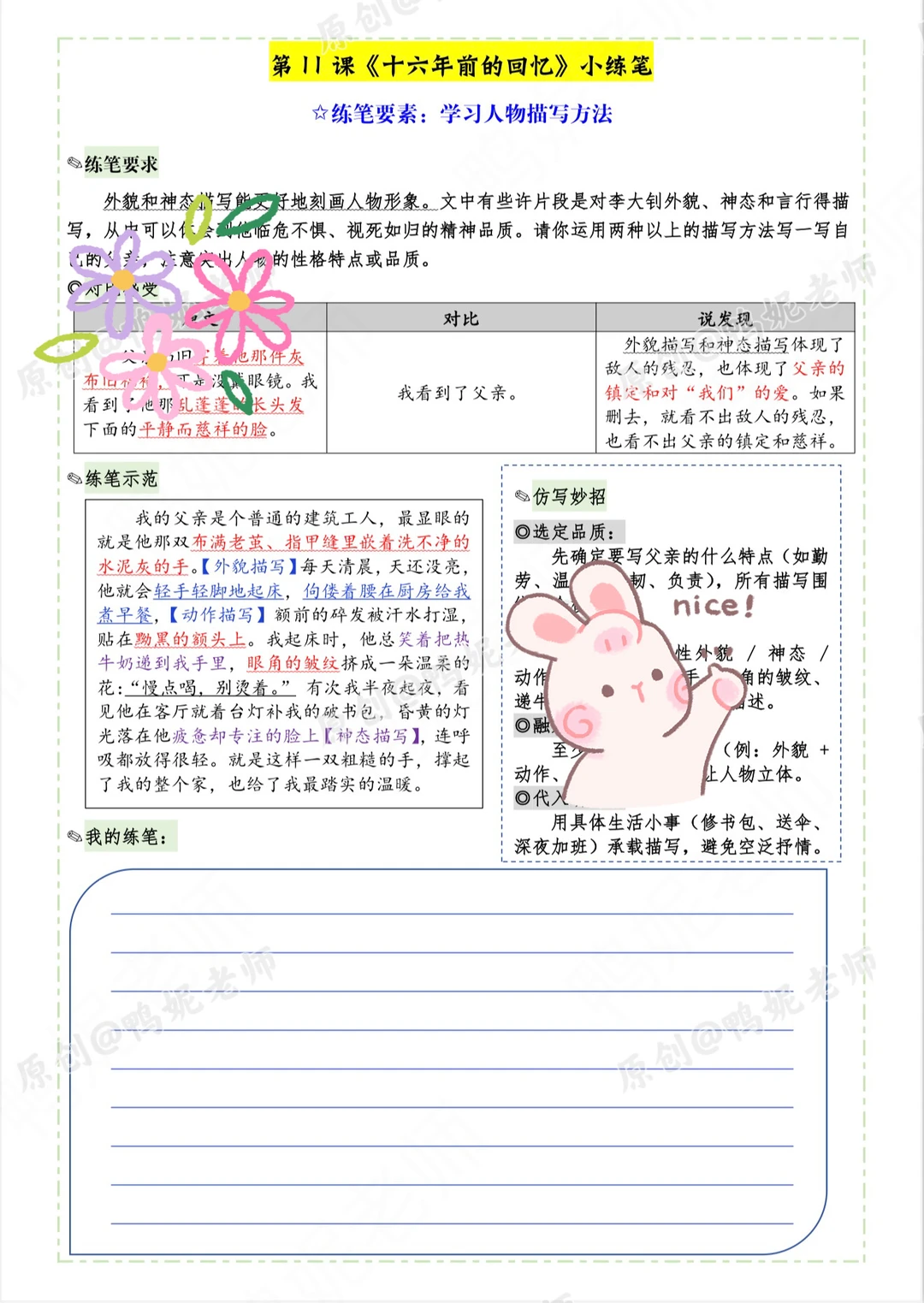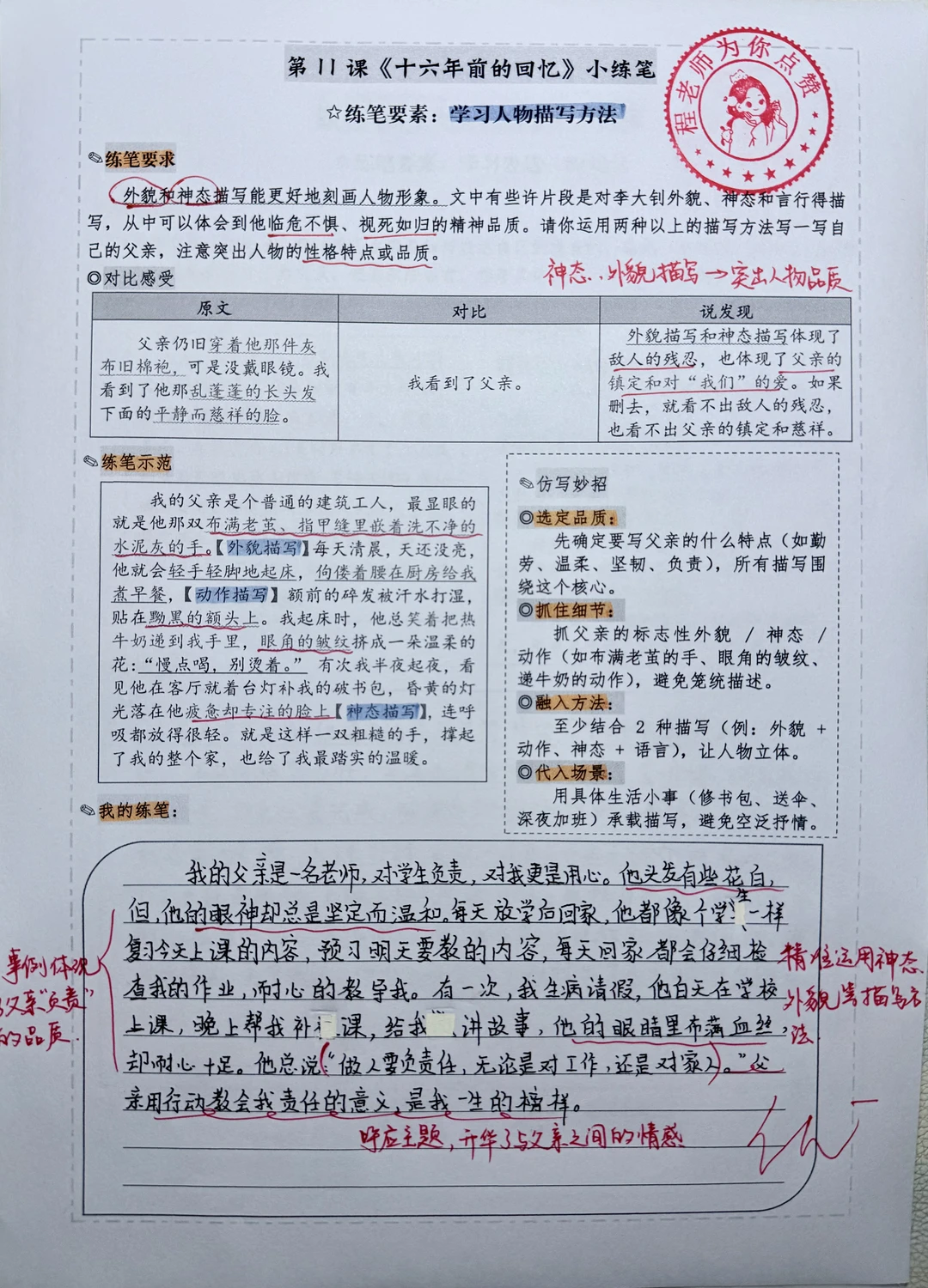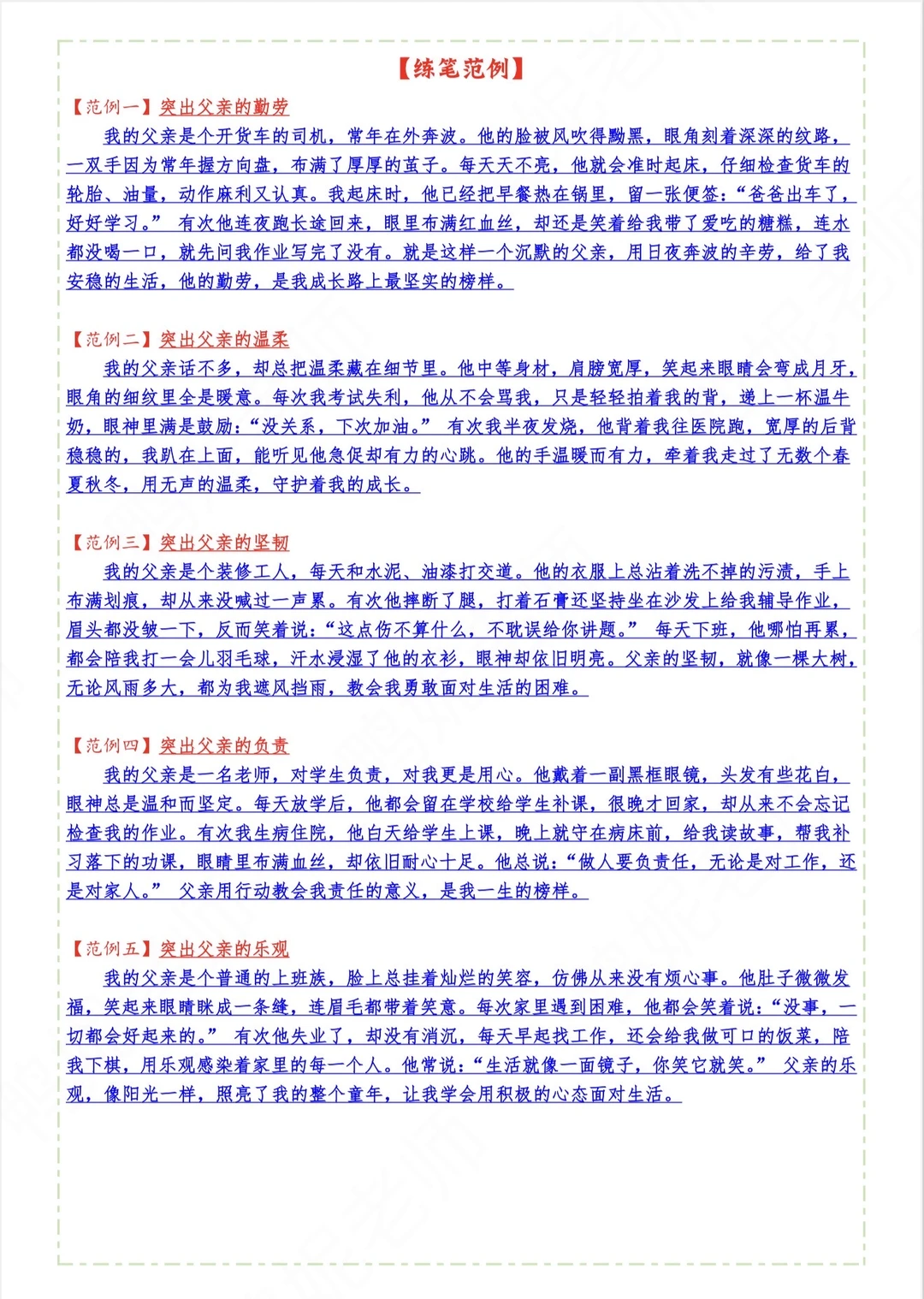 [二R]抓细节:抓住父亲的标志外貌/神态/动作)