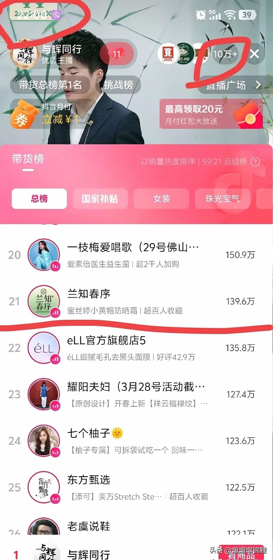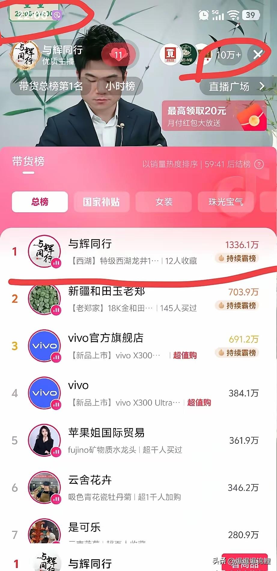直播间轻轻松松保持10万+,直接拿下带货总榜第一。