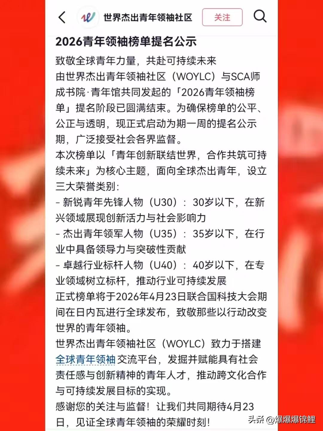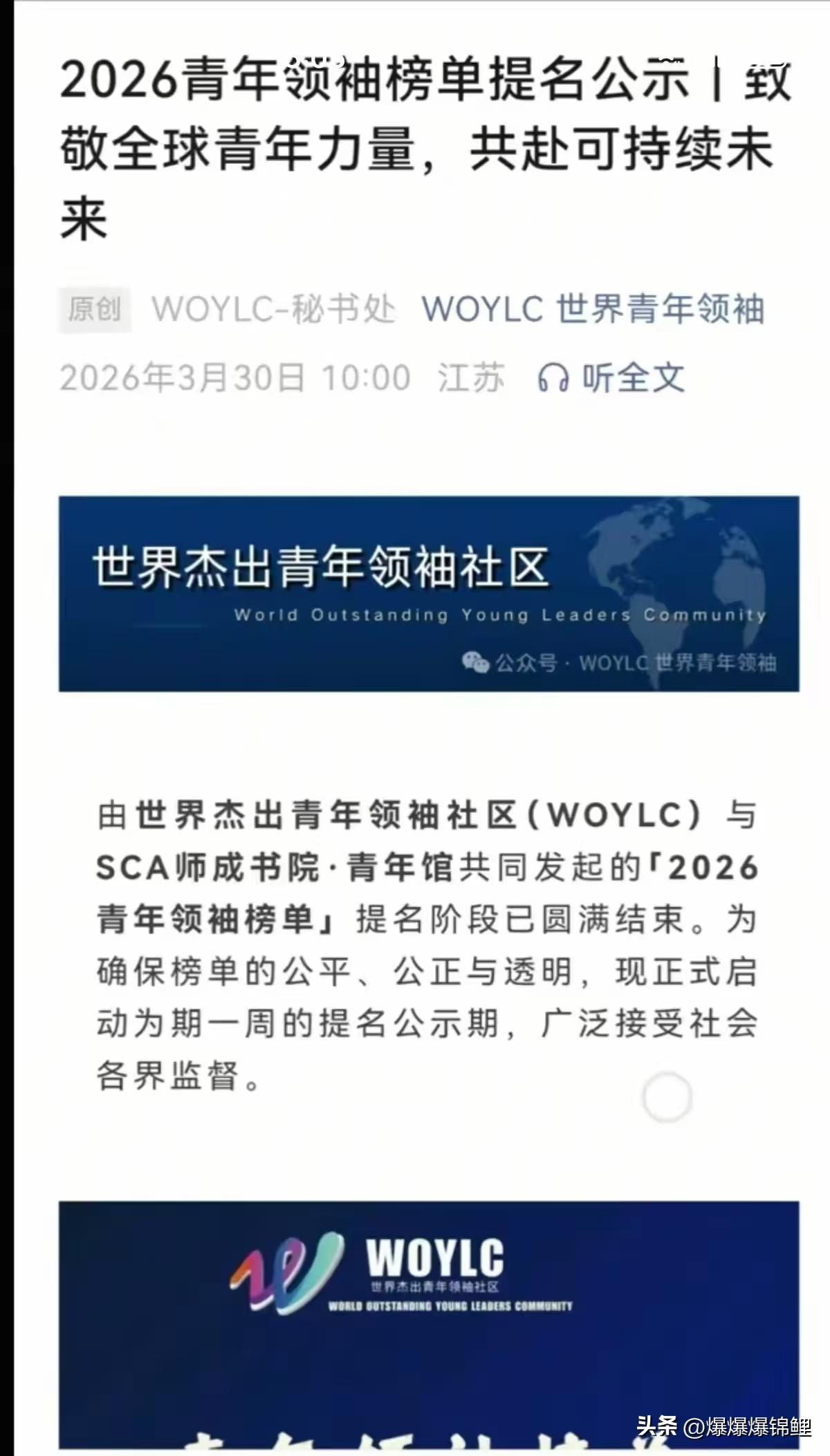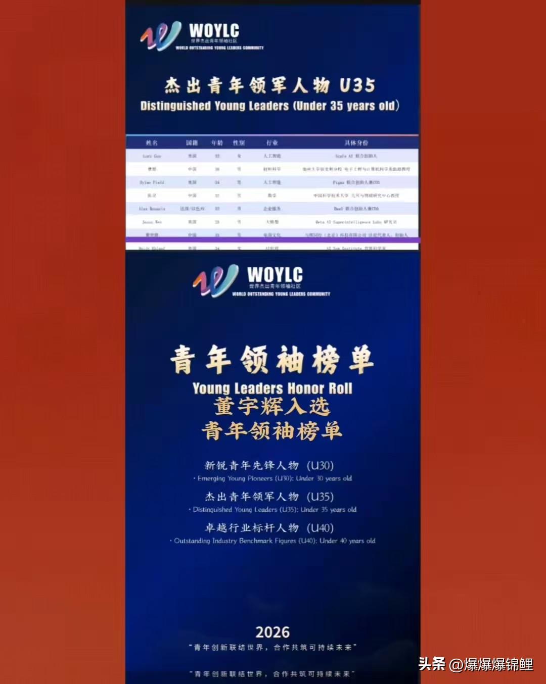董宇辉居然悄悄上了“2026WOYLC世界杰出青年领袖榜单”。