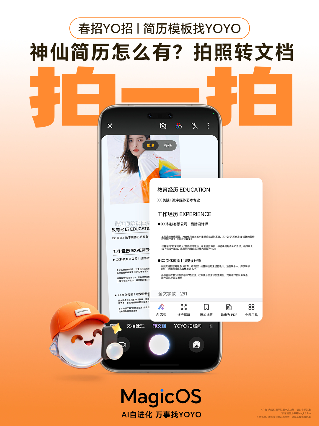用YOYO拍照转文档,优秀简历一拍就能提取文案,改简历超省心。