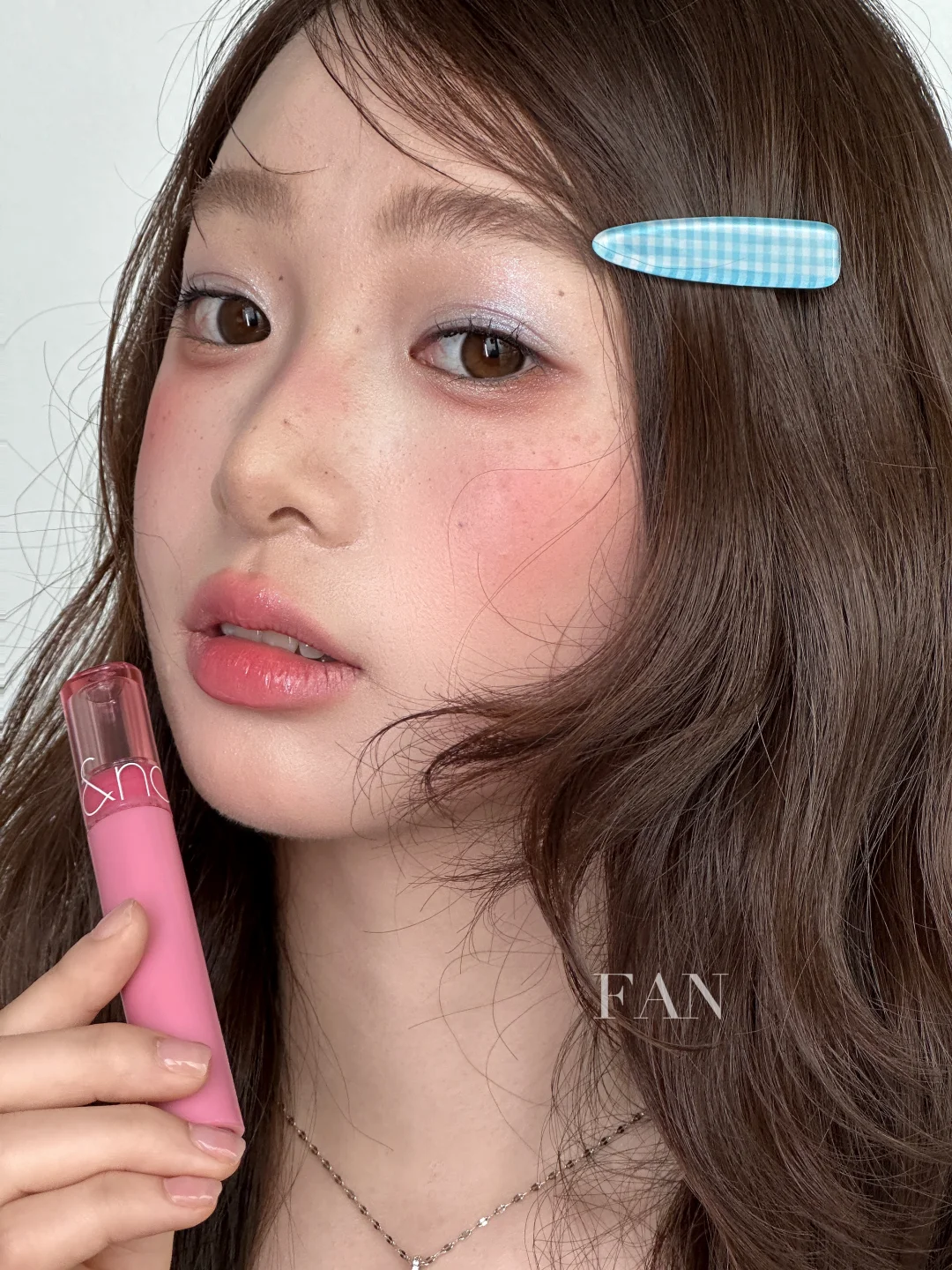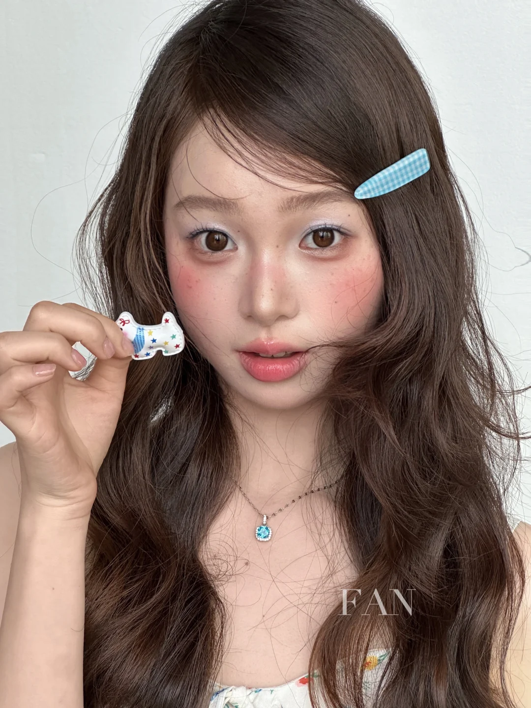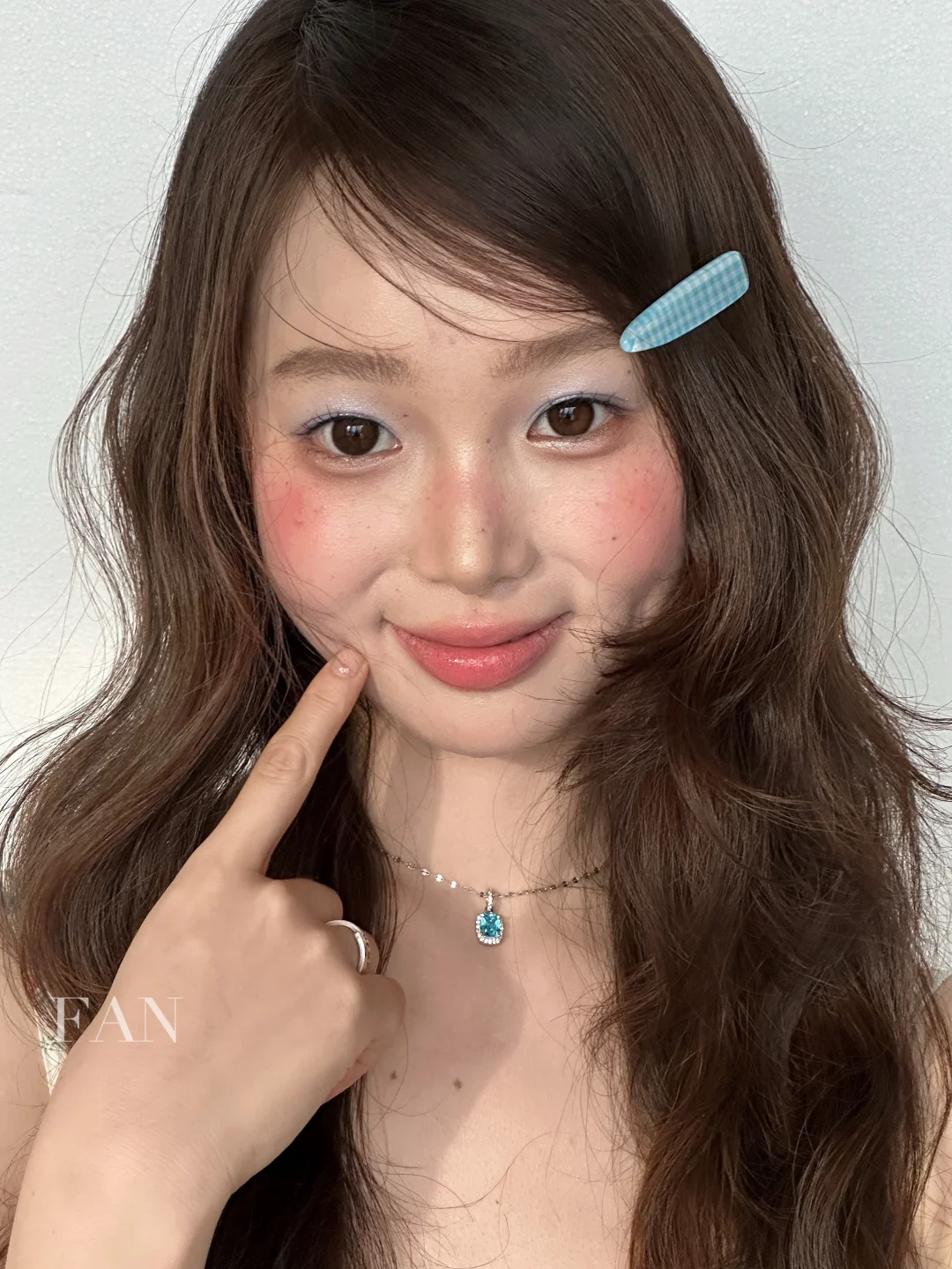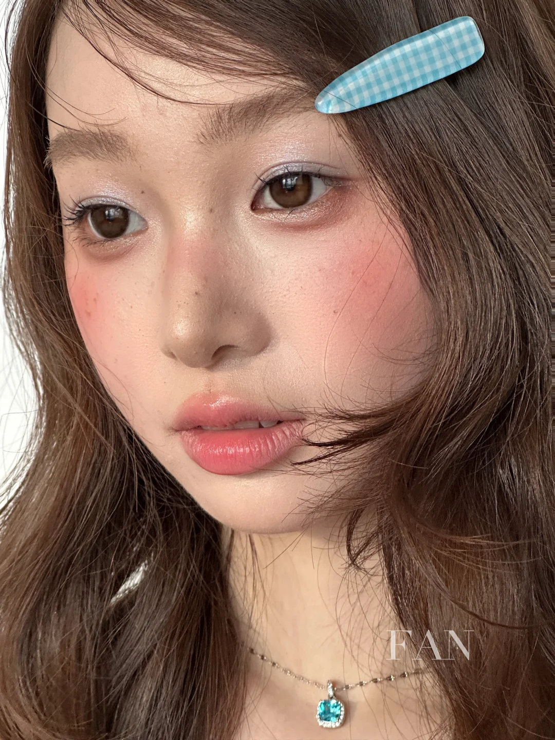 不要过于厚重的遮瑕,微微透出一点皮肤原有的质感,同时也避免比较明显的修容,沿着自身骨相即可,腮红打在面中、颧骨以及鼻梁处,叠加晕染修容的地方增加氛围感,重点是眼妆的蓝色眼影,利用撞色更显鬼马少女感!