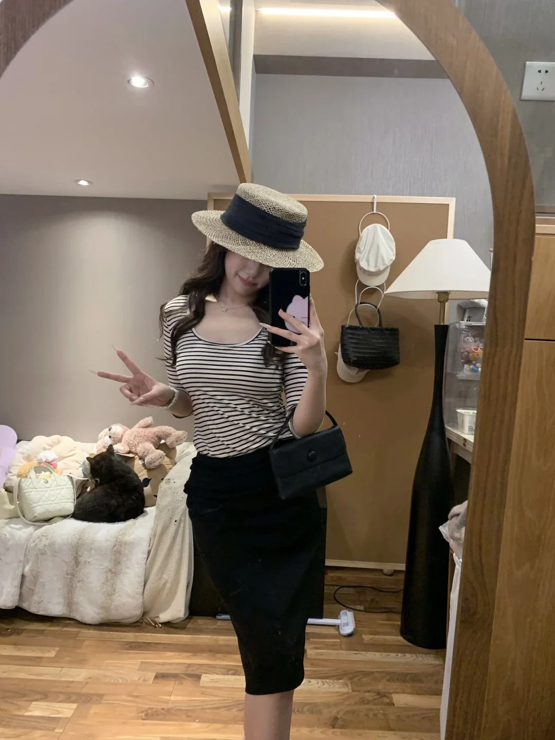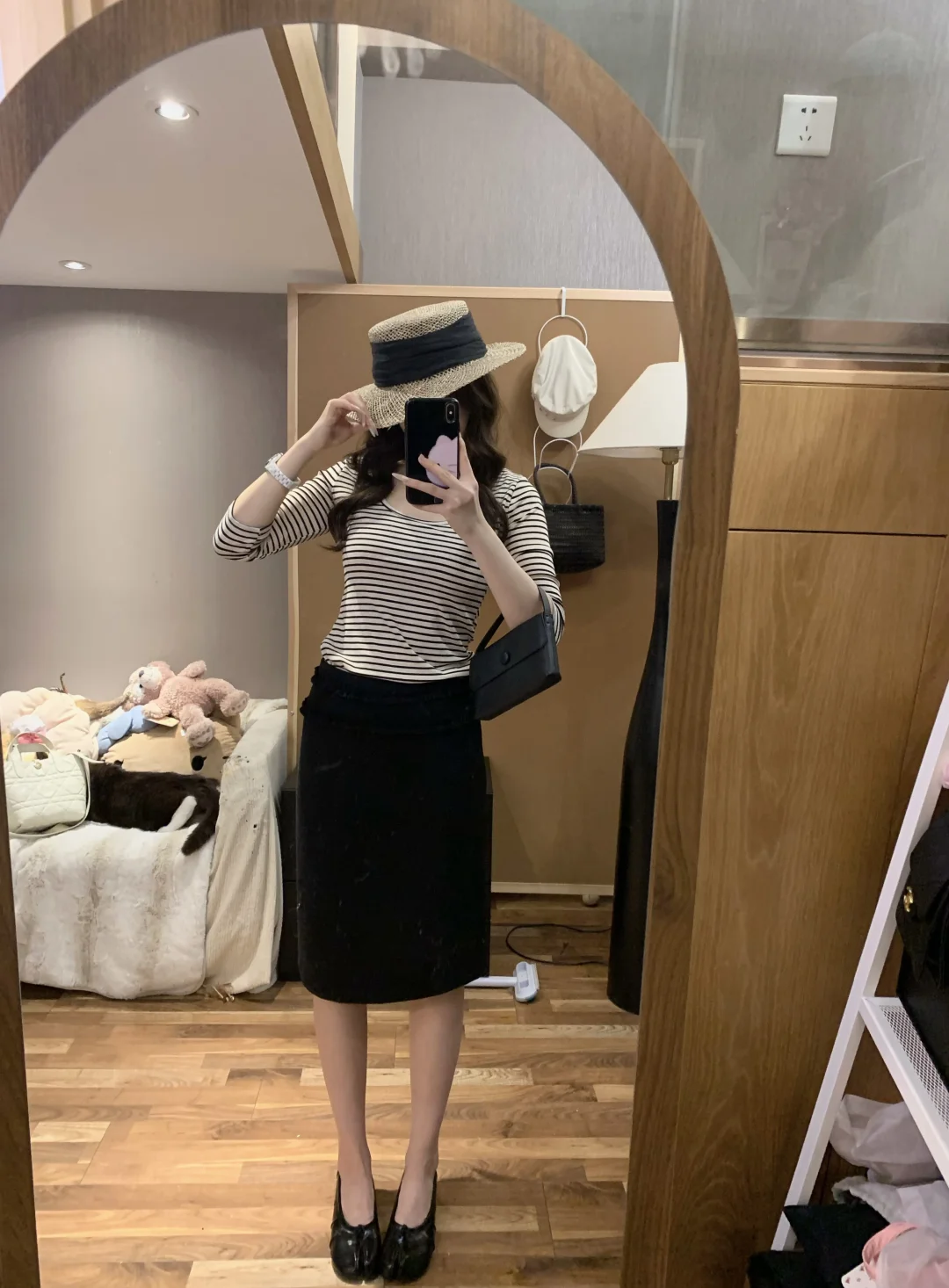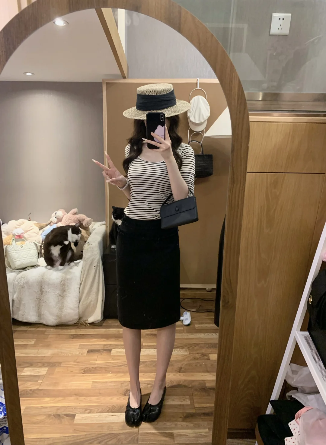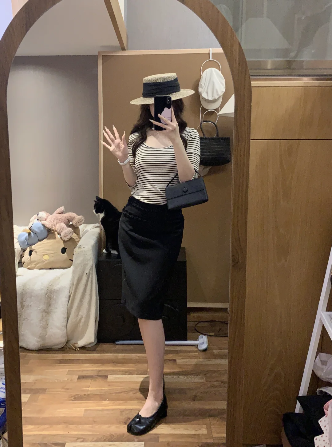 慵懒感穿搭 蘑糯糯 韩系穿搭 西装裙 半身裙搭配 黑色半身裙 纸片人穿搭 显瘦A字裙穿搭 韩系 蘑糯糯新品