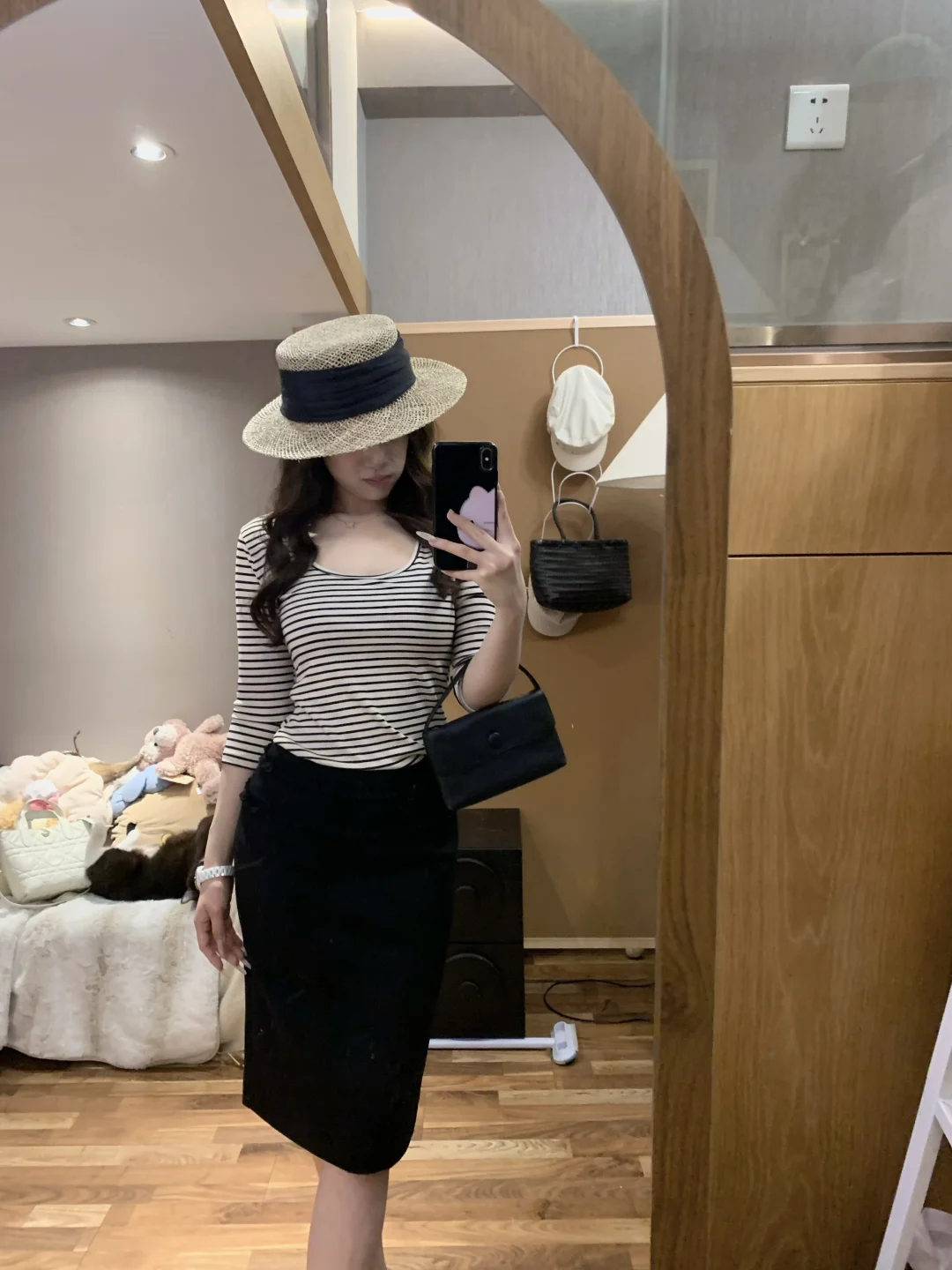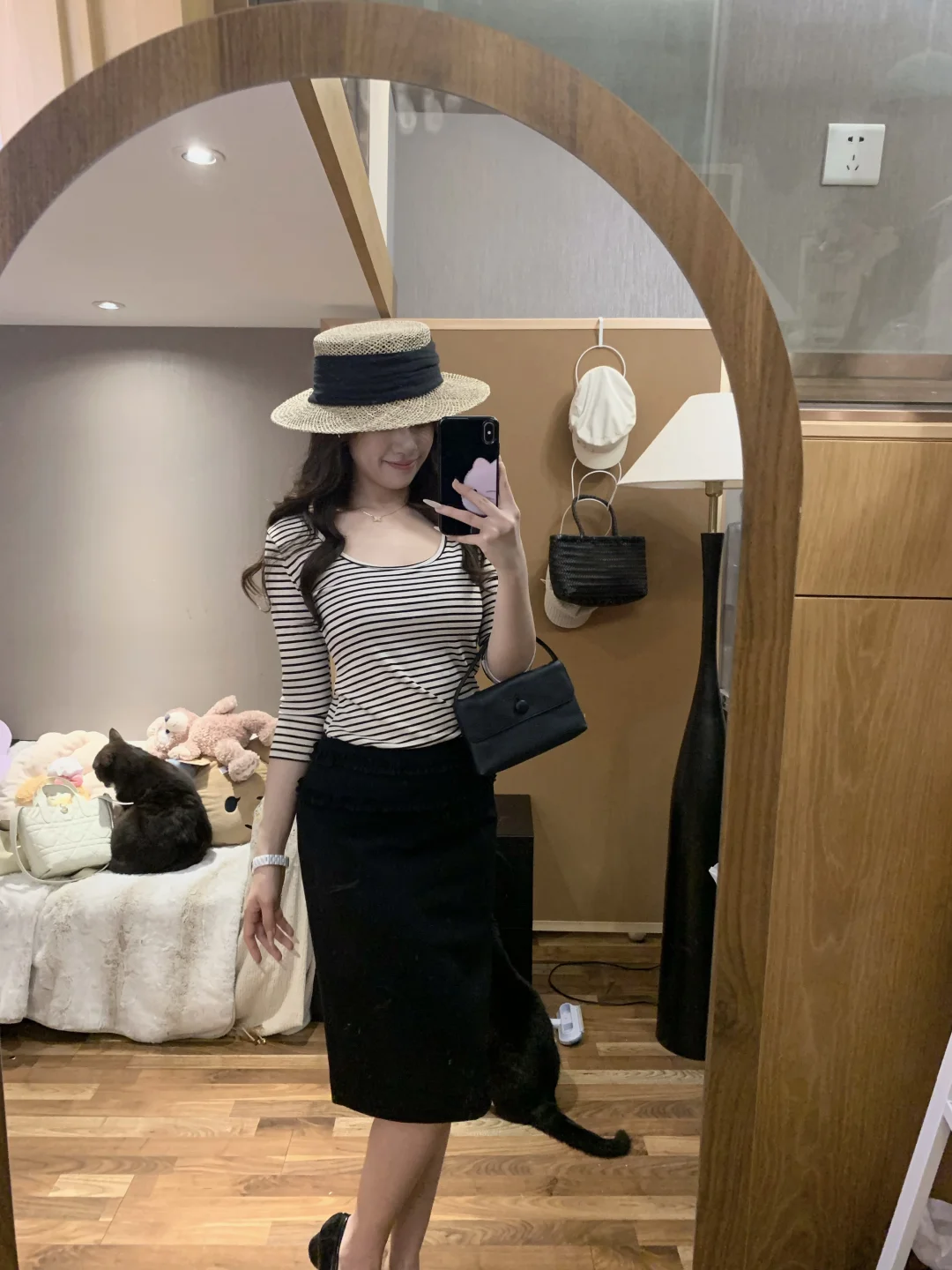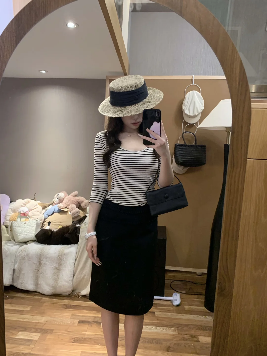 慵懒感穿搭 蘑糯糯 韩系穿搭 西装裙 半身裙搭配 黑色半身裙 纸片人穿搭 显瘦A字裙穿搭 韩系 蘑糯糯新品