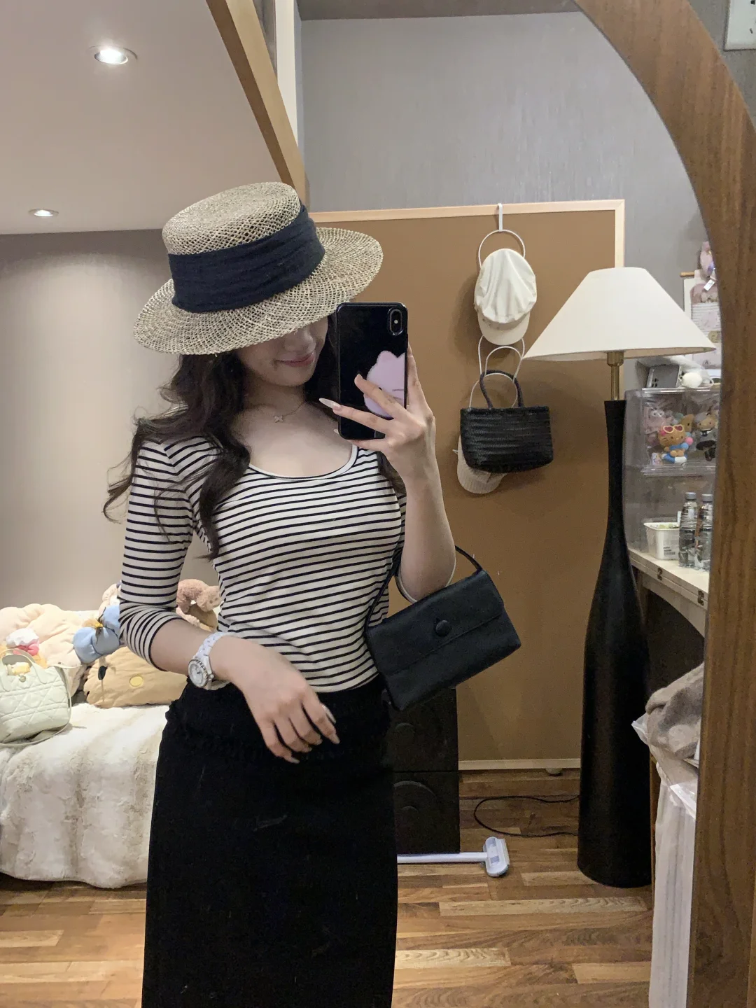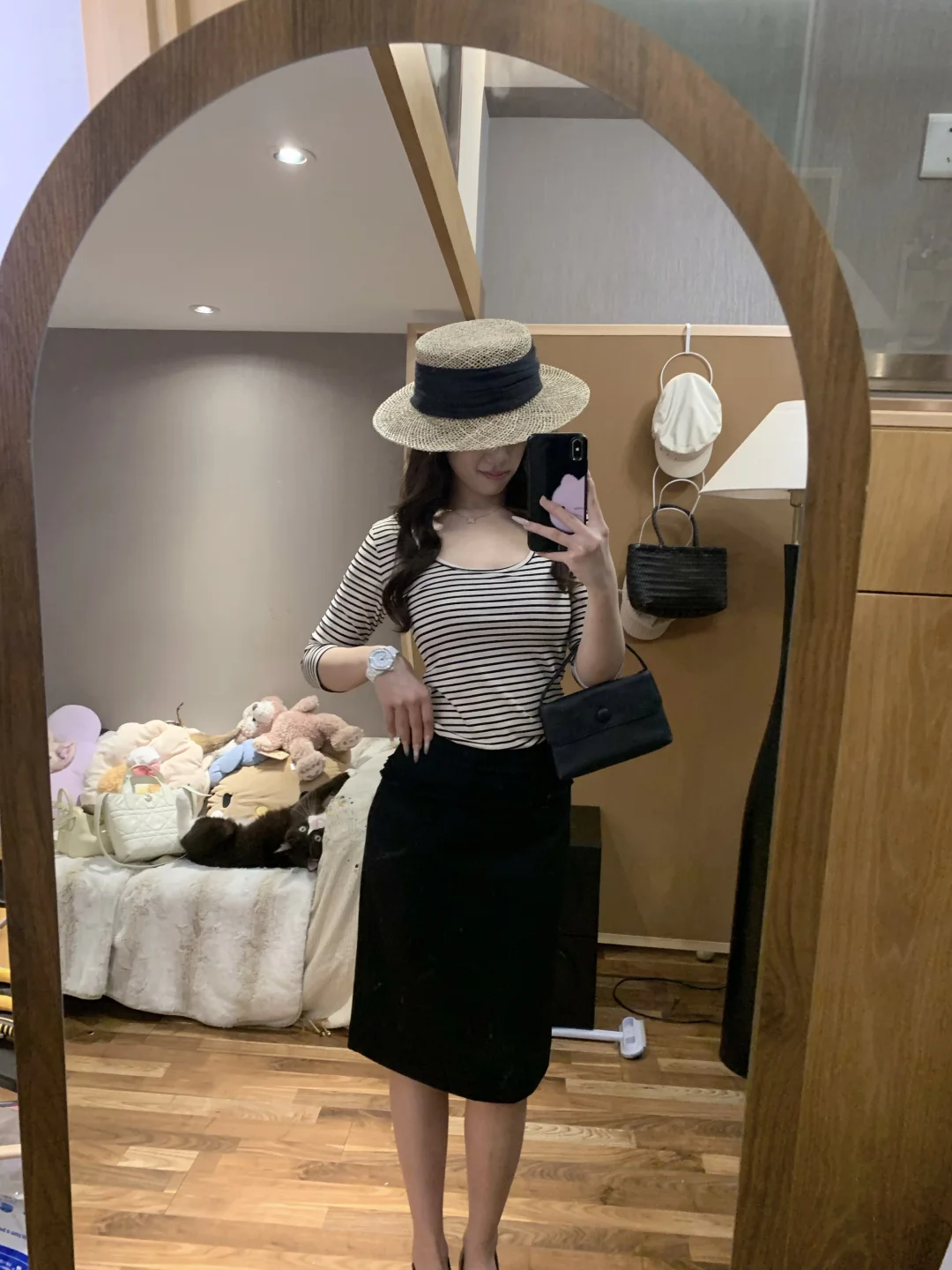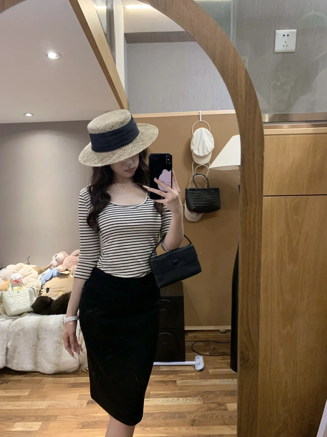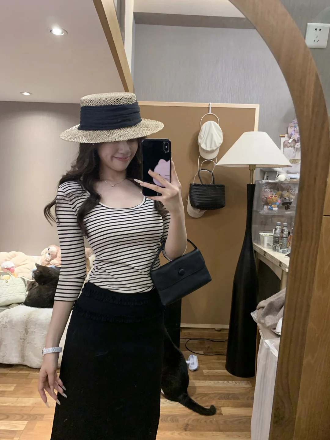 慵懒感穿搭 蘑糯糯 韩系穿搭 西装裙 半身裙搭配 黑色半身裙 纸片人穿搭 显瘦A字裙穿搭 韩系 蘑糯糯新品