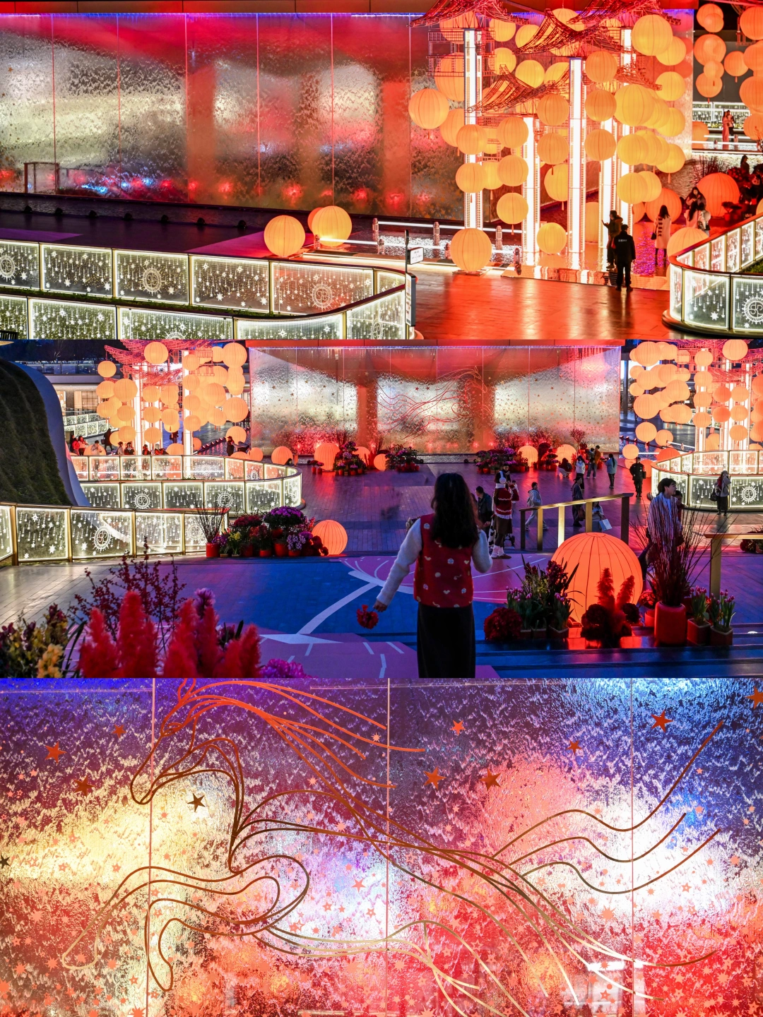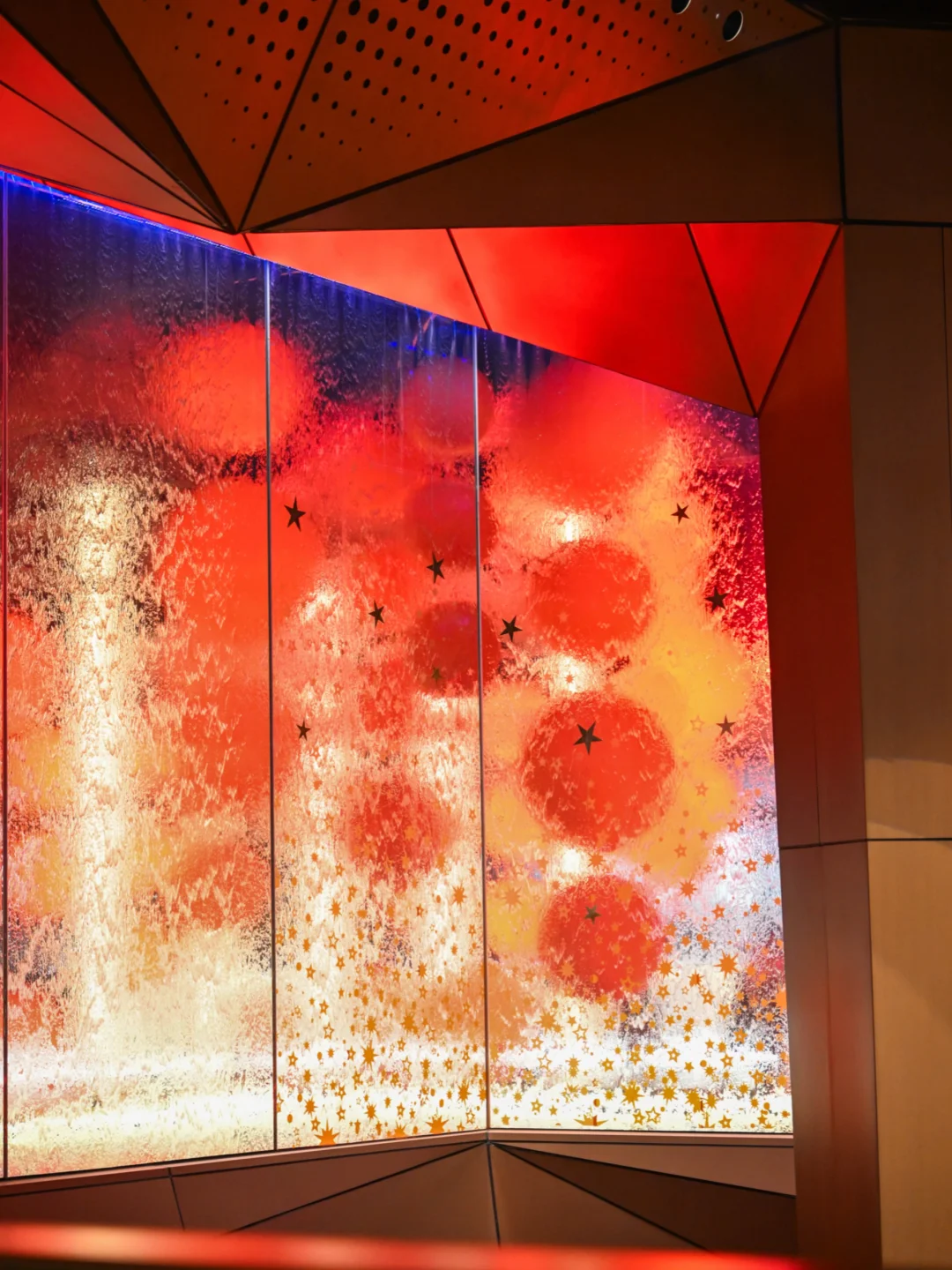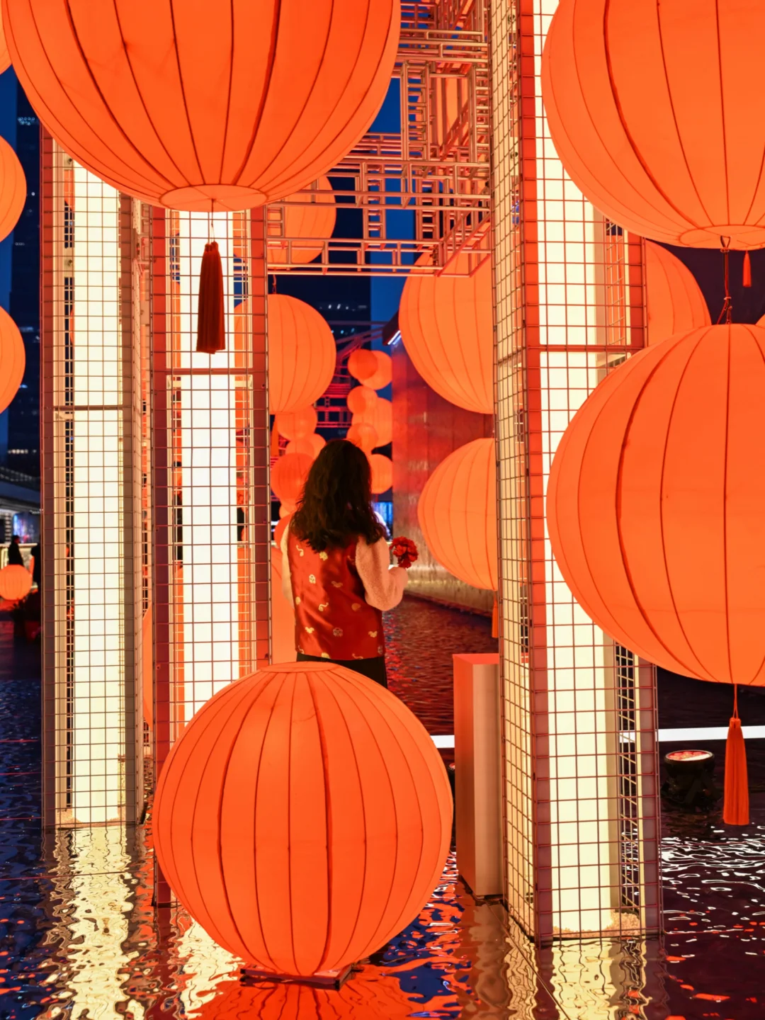 橘红色的福灯🏮围绕水幕盒子,