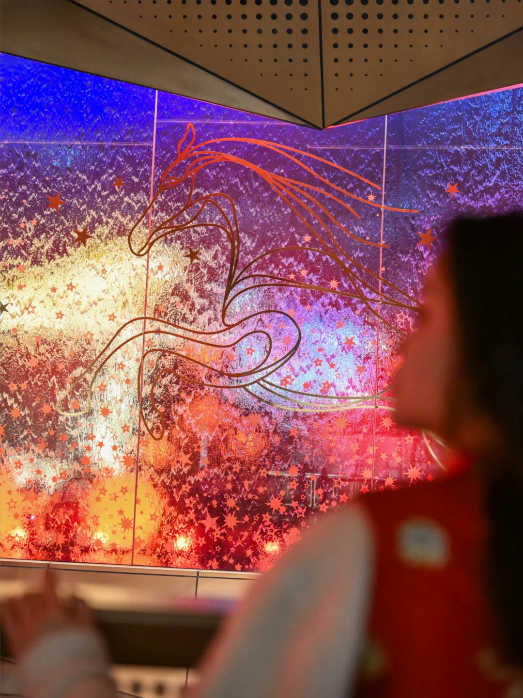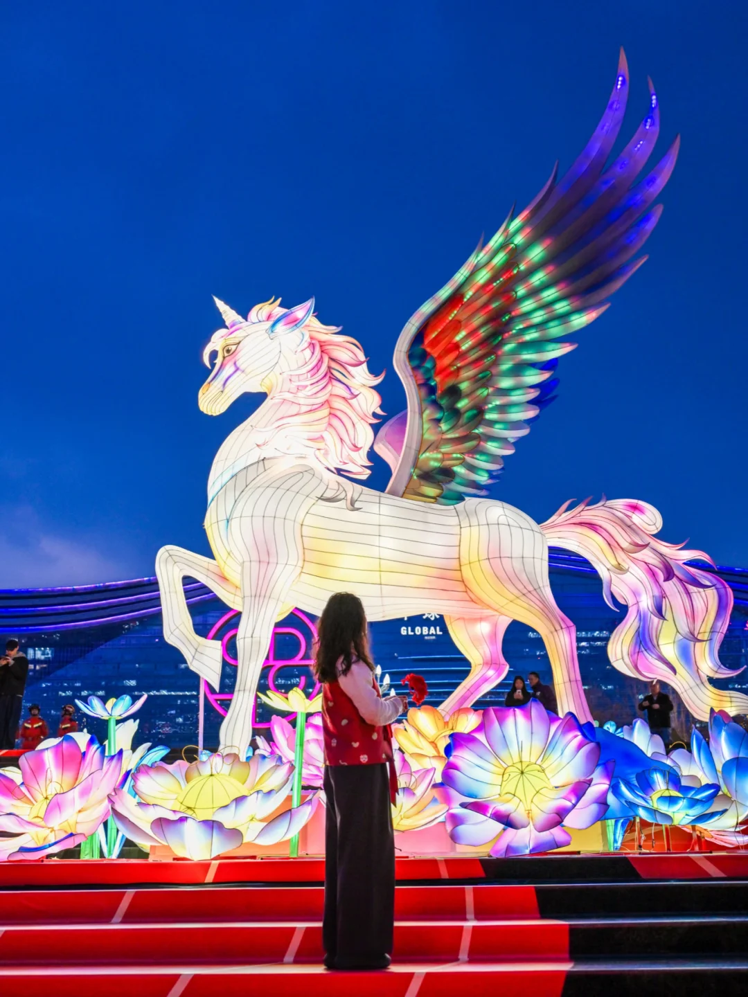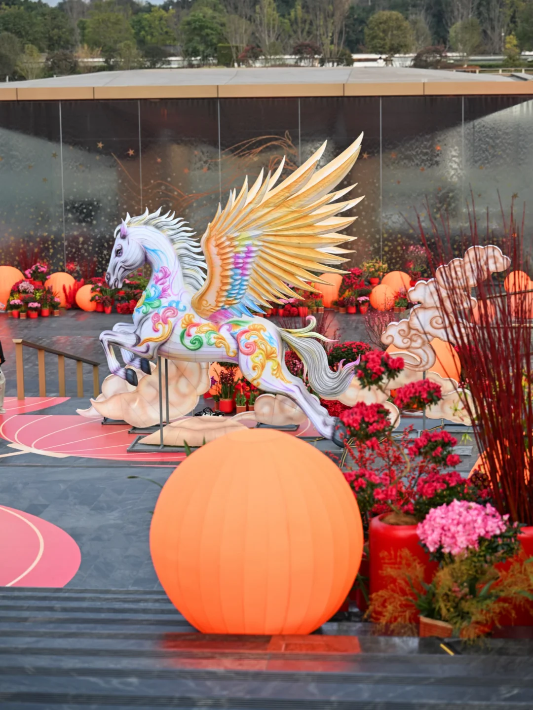 橘红色的福灯🏮围绕水幕盒子,