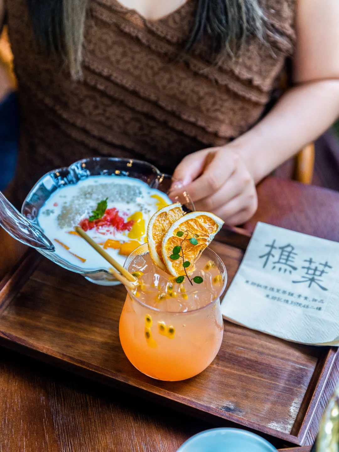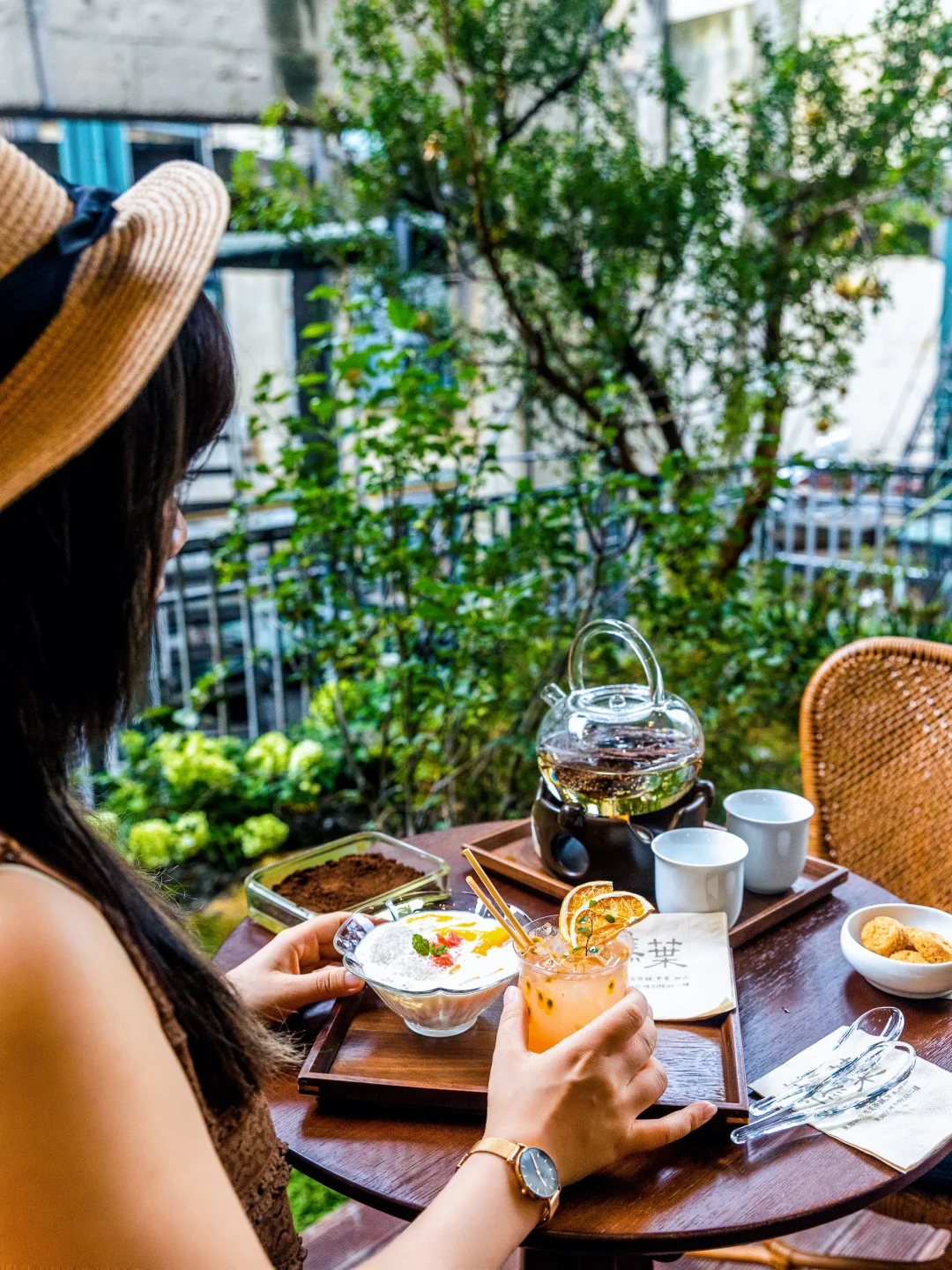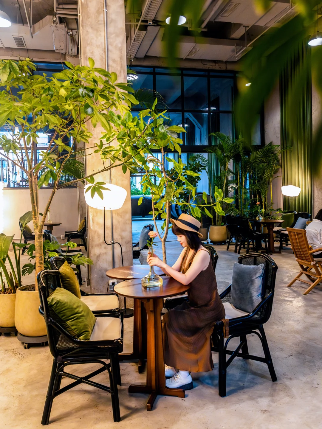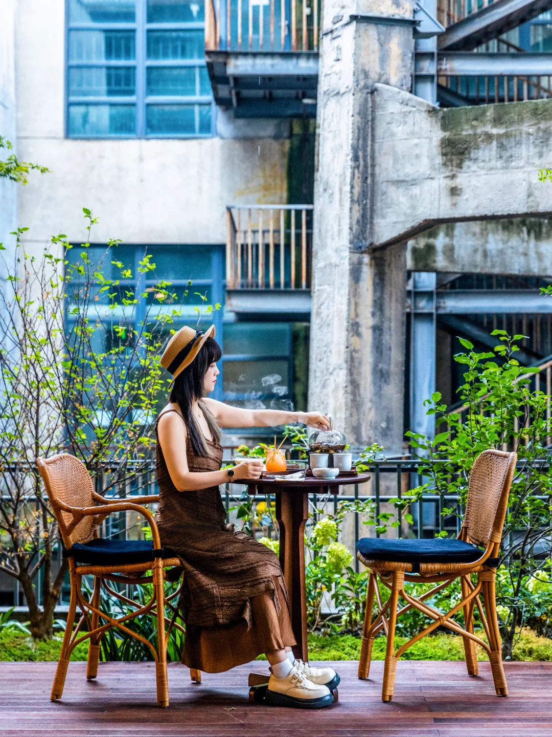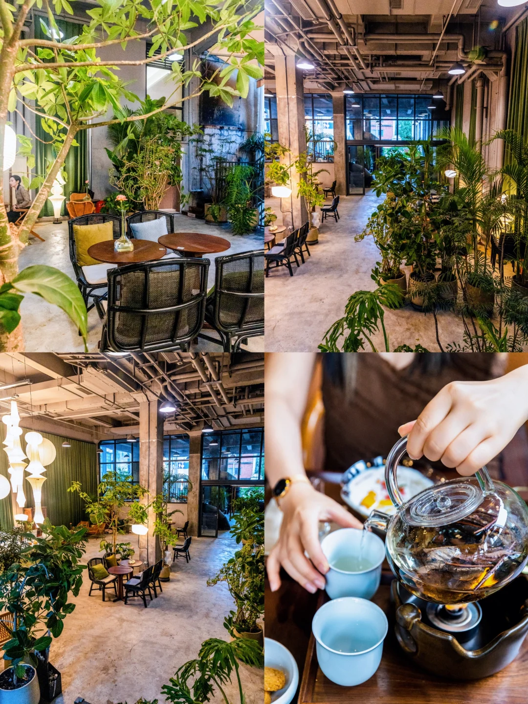 茶铺的装修是保留了东郊记忆本身工厂的古老建筑,然后种了超多绿植,有柠檬🍋树,有石榴,在里面喝茶,就很治愈