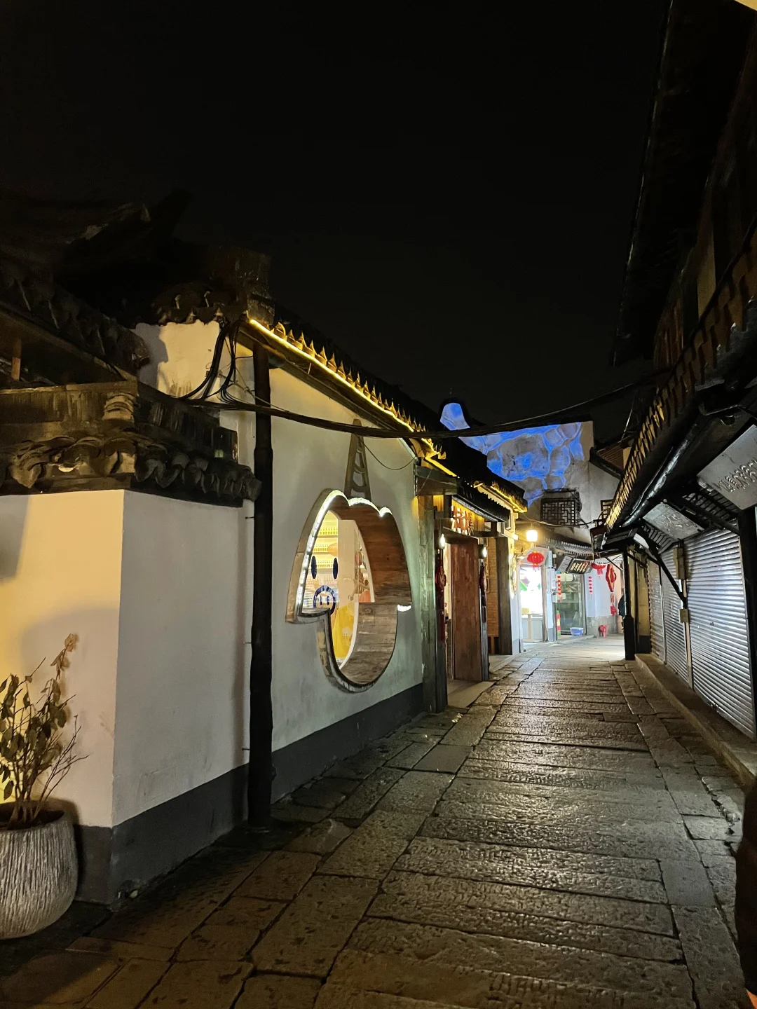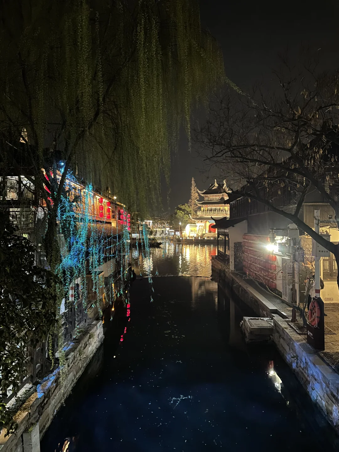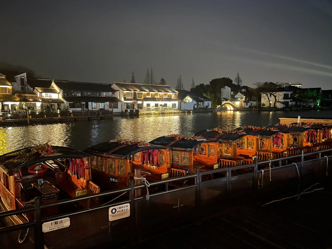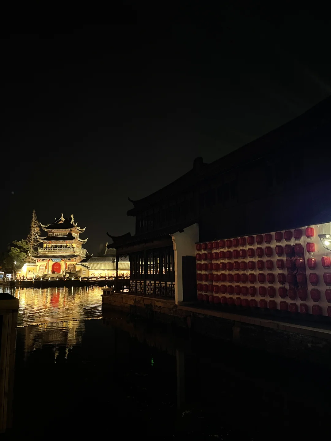 因为确实离市区距离挺远的,上海坐地铁的时间真的挺久的,一个小时起步[捂脸R][捂脸R]工作日的夜晚🏙天气挺冷古镇人不多,逛一逛,在古镇吃个晚饭还挺不错的,也是到此一游了[偷笑R]