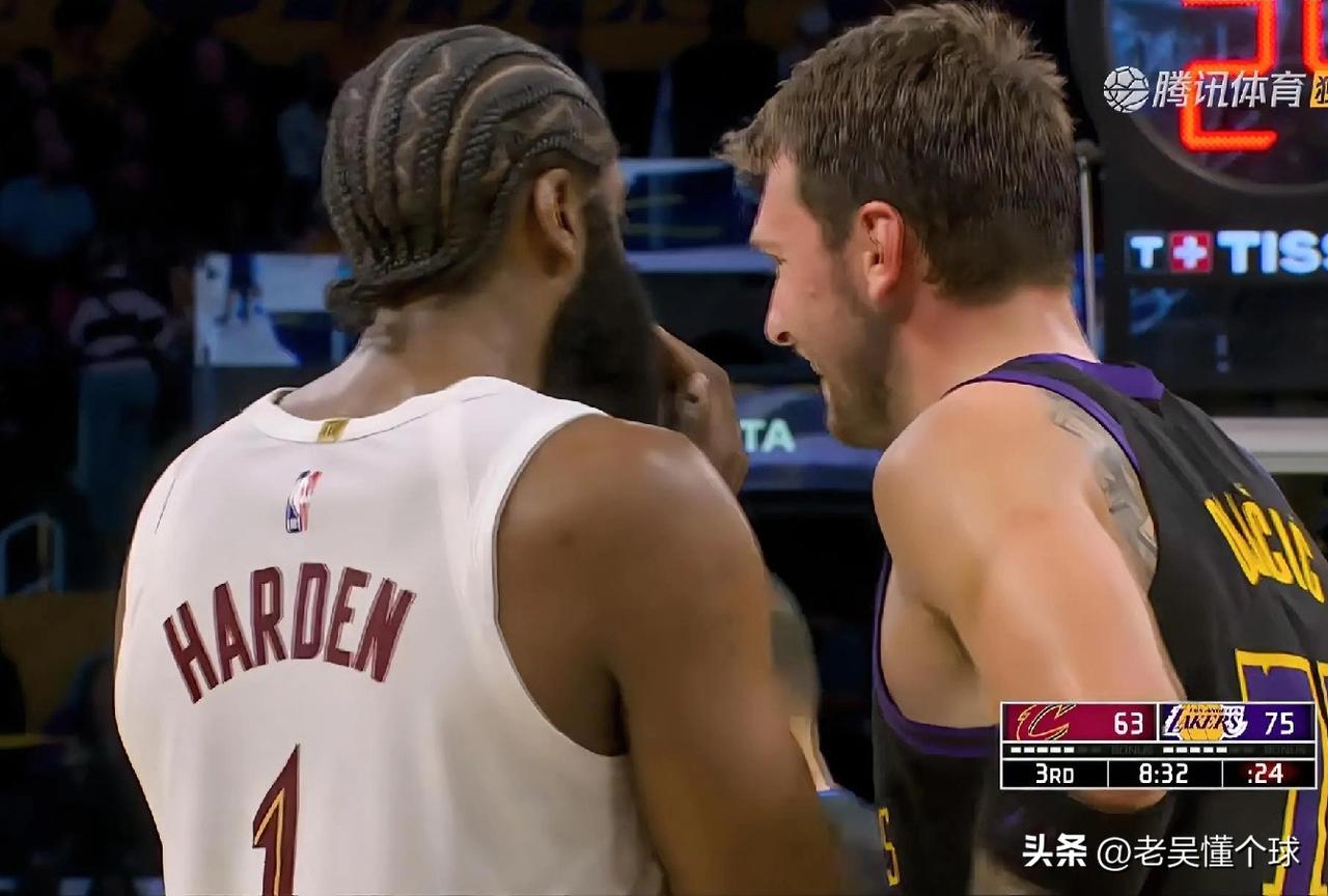 今天湖人跟骑士的比赛中,打到第三节时,湖人的势头明显压了骑士一头,但作为核心的哈登并没有太多的沮丧和着急,在场上反而跟东契奇聊起了天,刚好镜头给了他们俩特写,但不知道聊的什么,因为哈登用手遮住了嘴巴,东契奇则是背对镜头的。