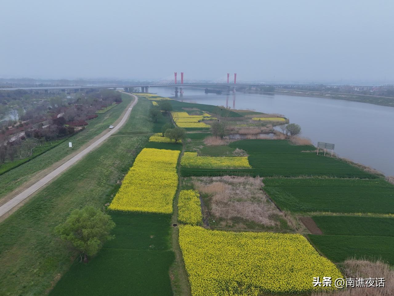 那拉提草原你去过吗?新疆的那拉提我还没去过,但涡河八桥附近的这个地方被称为安徽怀远的那拉提,最近油菜花盛开,麦苗泛绿,涡河大堤下一片葱绿,宛如新疆那拉提草原,值得开打卡。