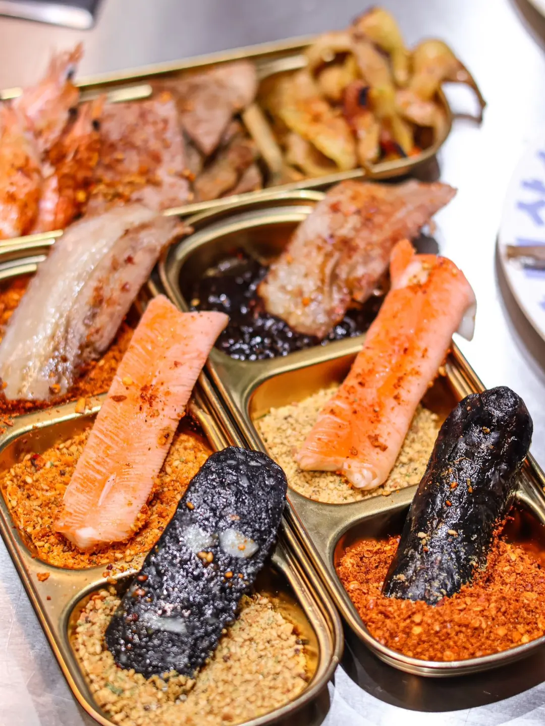 亩亩奶香肥牛、大刀五花、韩式肥牛、芝士黄油松板肉、厄瓜多尔白虾