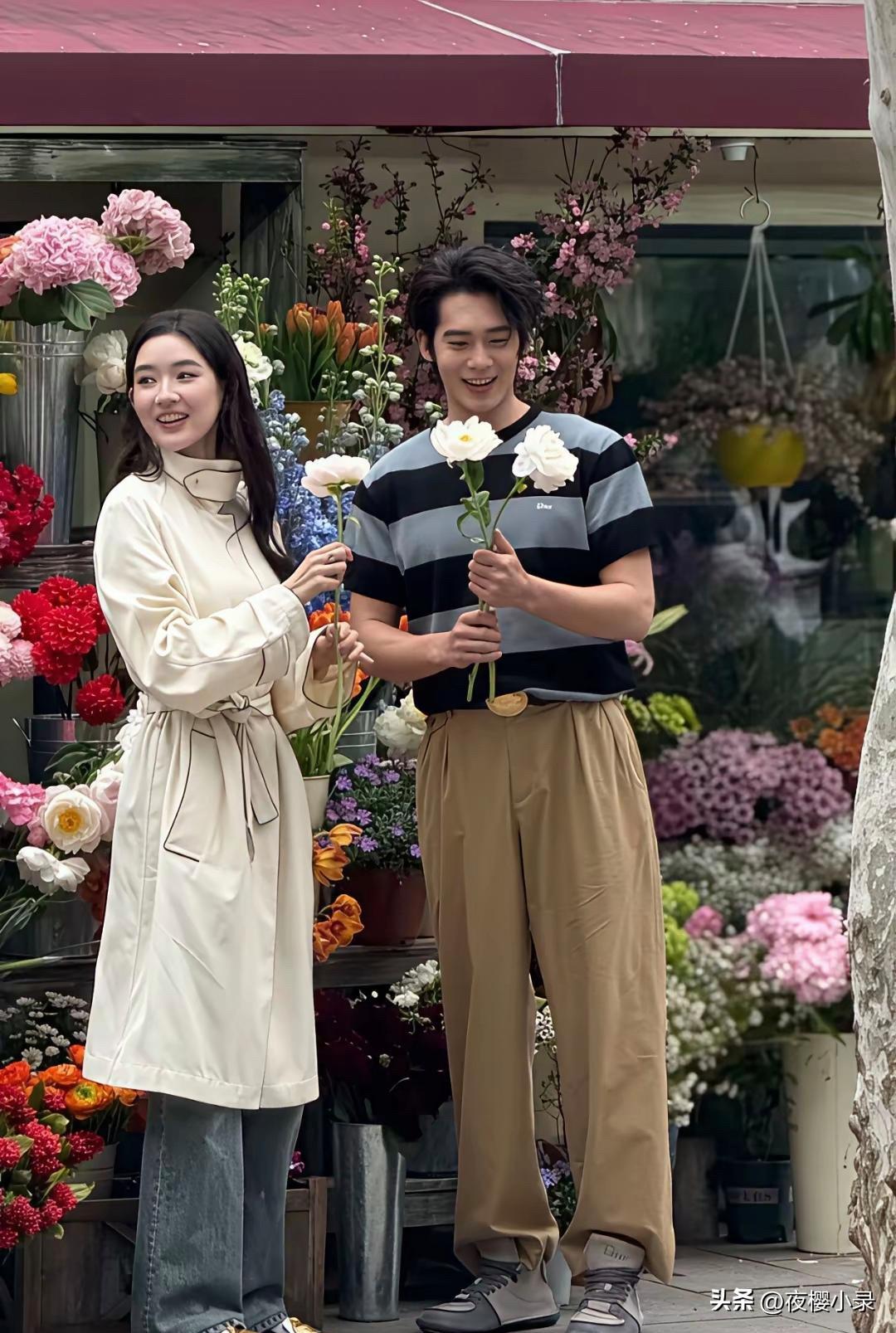 于适与王玉雯现身上海街头花店拍活动,这画面也太养眼了吧!两人站在繁花簇拥中,完全