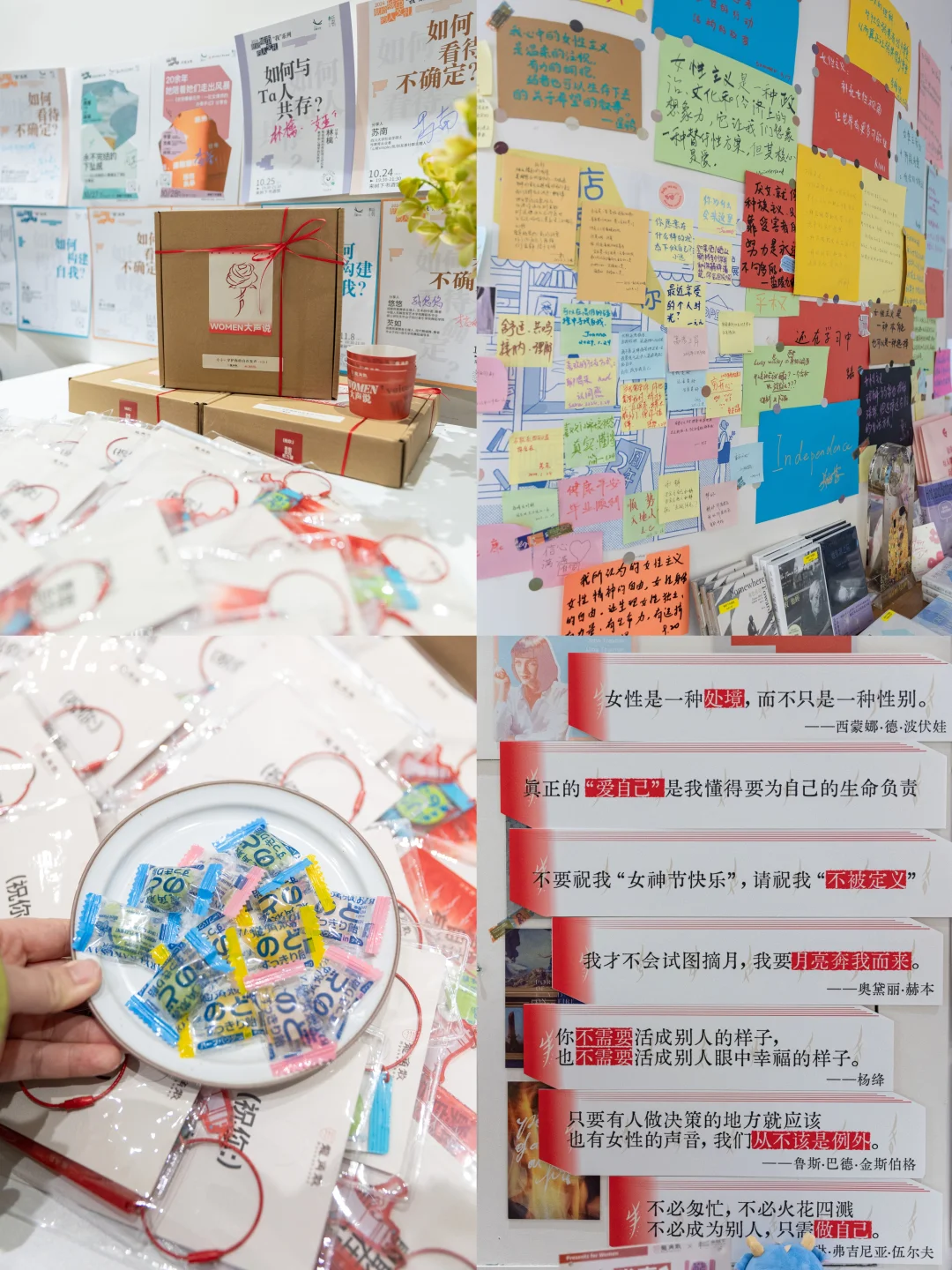 现场布置得特别有氛围,许多和【女性发声】主题的海报和装置