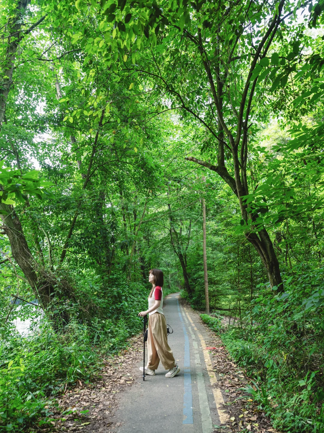 清凉的溪水,茂密的森林,满眼都是清新的绿,全程绿树成荫,完全不怕晒