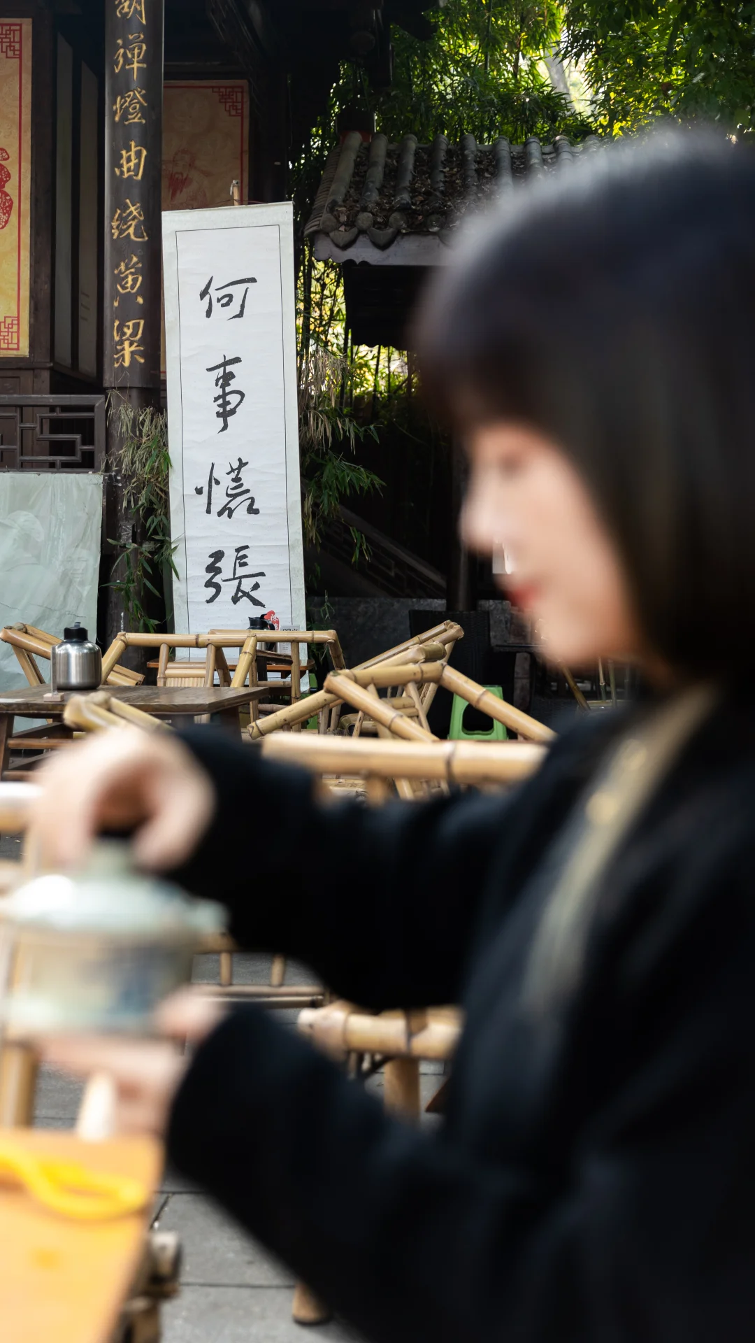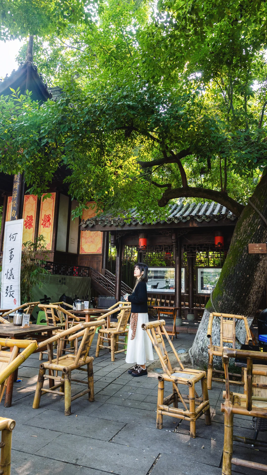 陈锦茶铺应该是最出片的茶馆了 ,没有遮阳伞,又有戏台,有一颗大树,木桌藤椅。戏台前的“余生很长,何事慌张”, 感觉随处都很好拍📸