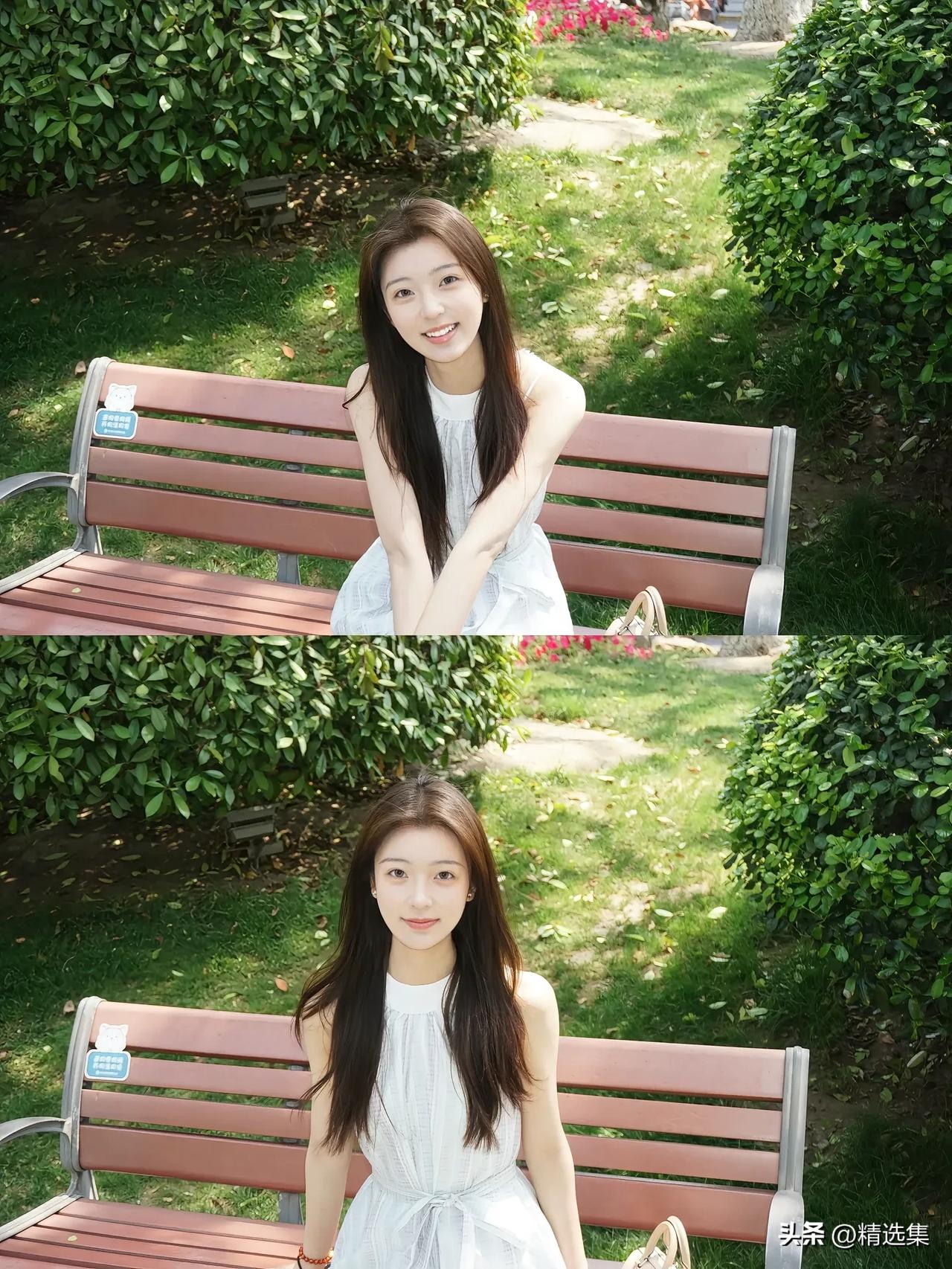 红墙映笑颜,绿树映春光。