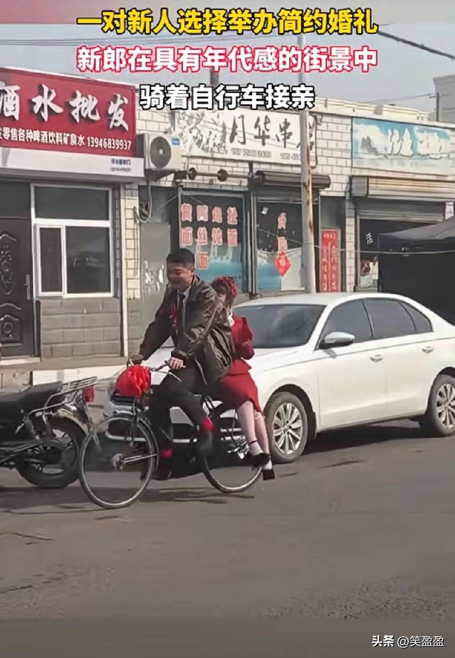 骑着自行车接亲