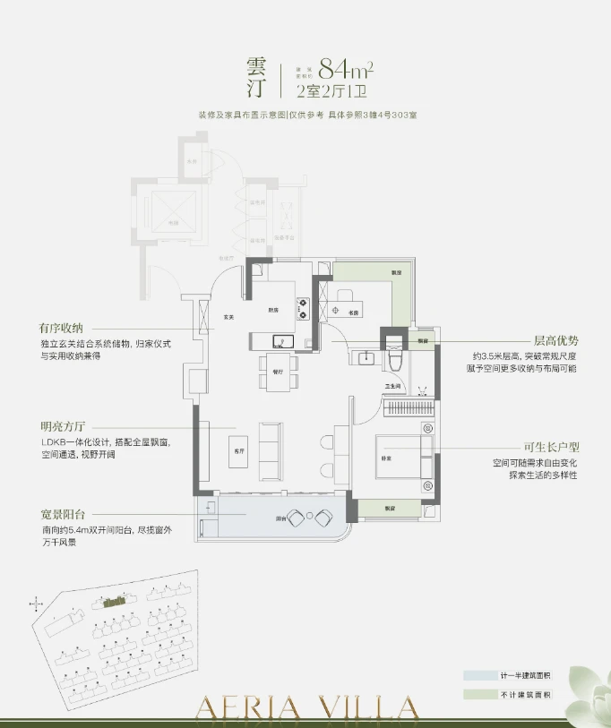 所以,当我看到金海雲墅这个建面约84㎡的户型时,有点意外,也觉得惊喜。