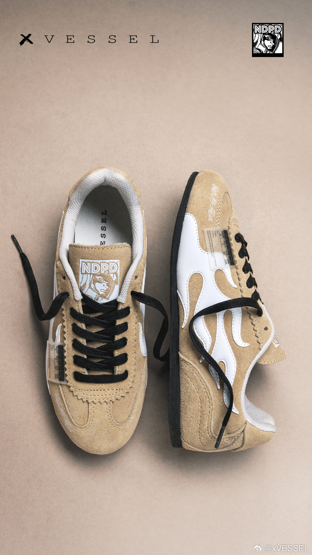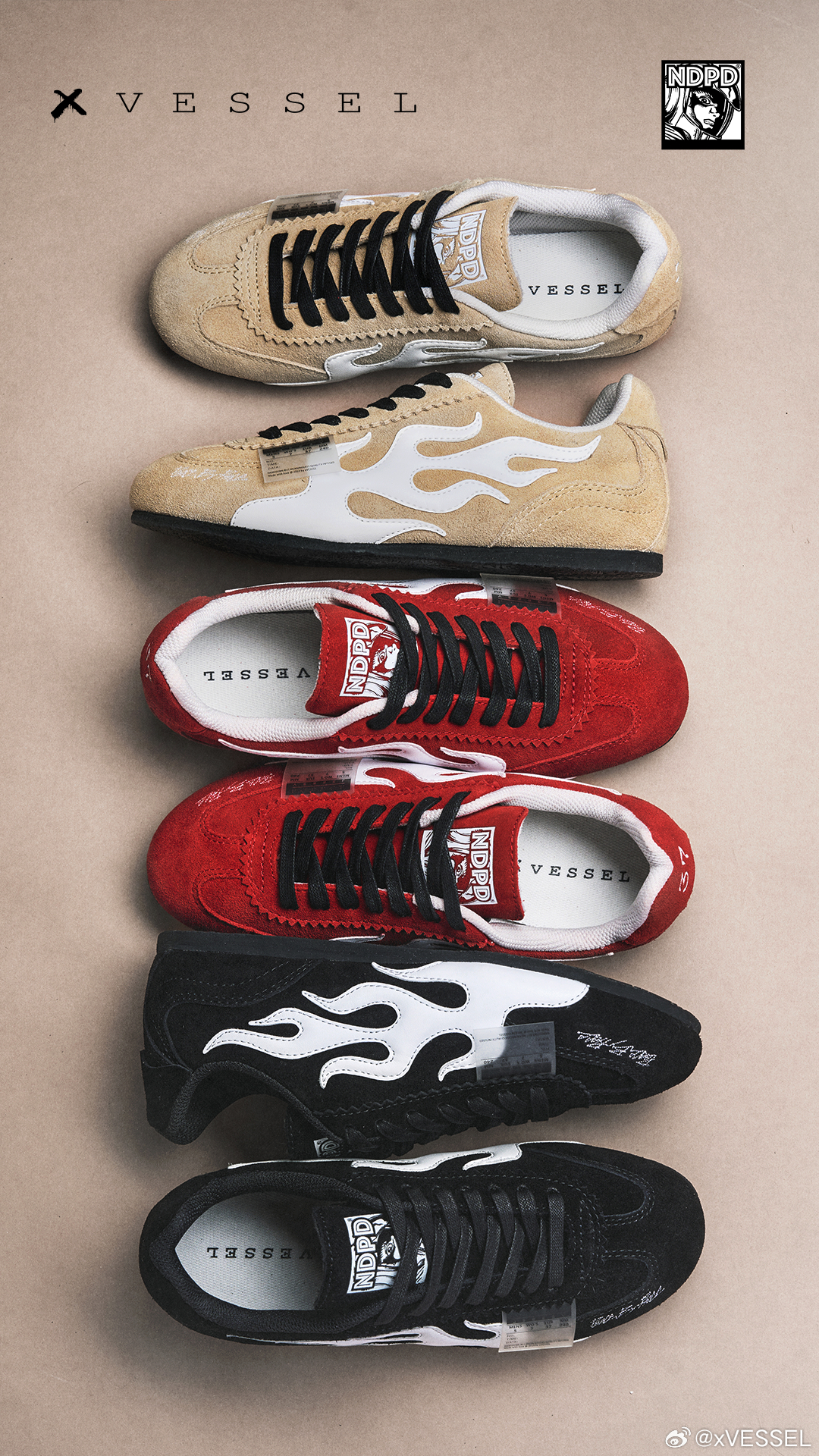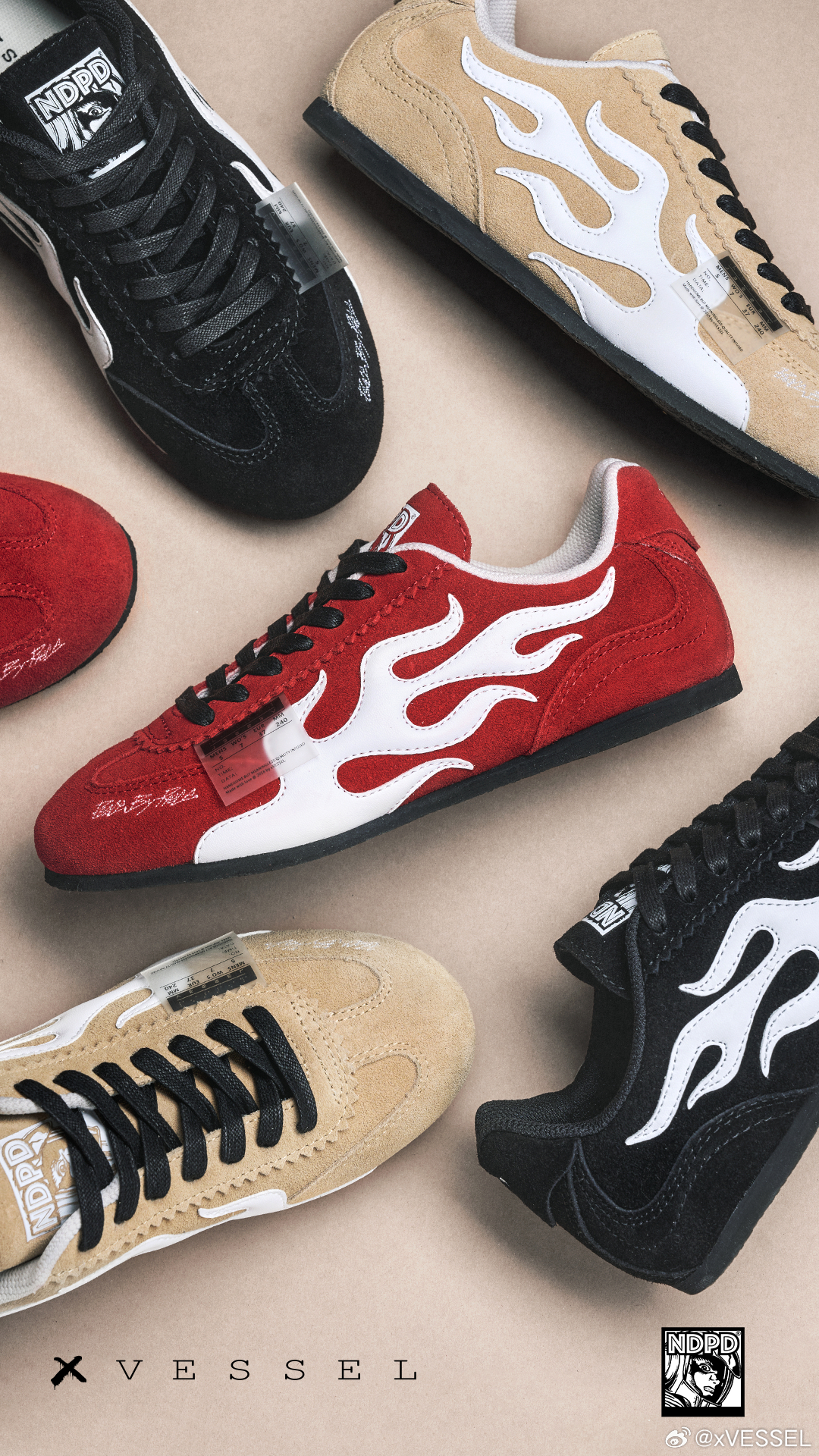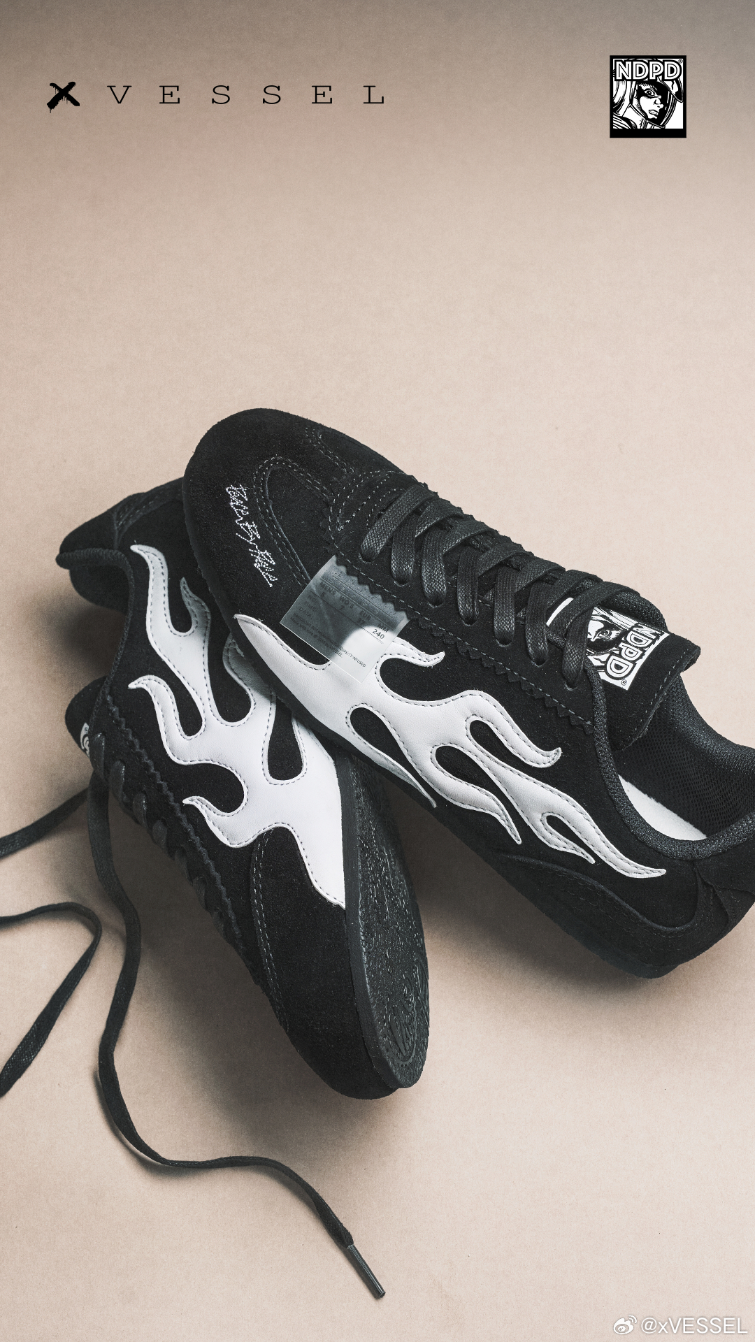 xVESSEL x NDPD联名「火车头」已发售‼️鞋身火焰纹是速度的签名,鞋舌宇航员是视角的延伸薄底包帮勾勒出贴地姿态,解构细节藏着经典回响从赛道到街头,从油门到笔触速度不再只是赛场上的一瞬,也可以是落脚于街头,时刻准备出发的随性姿态