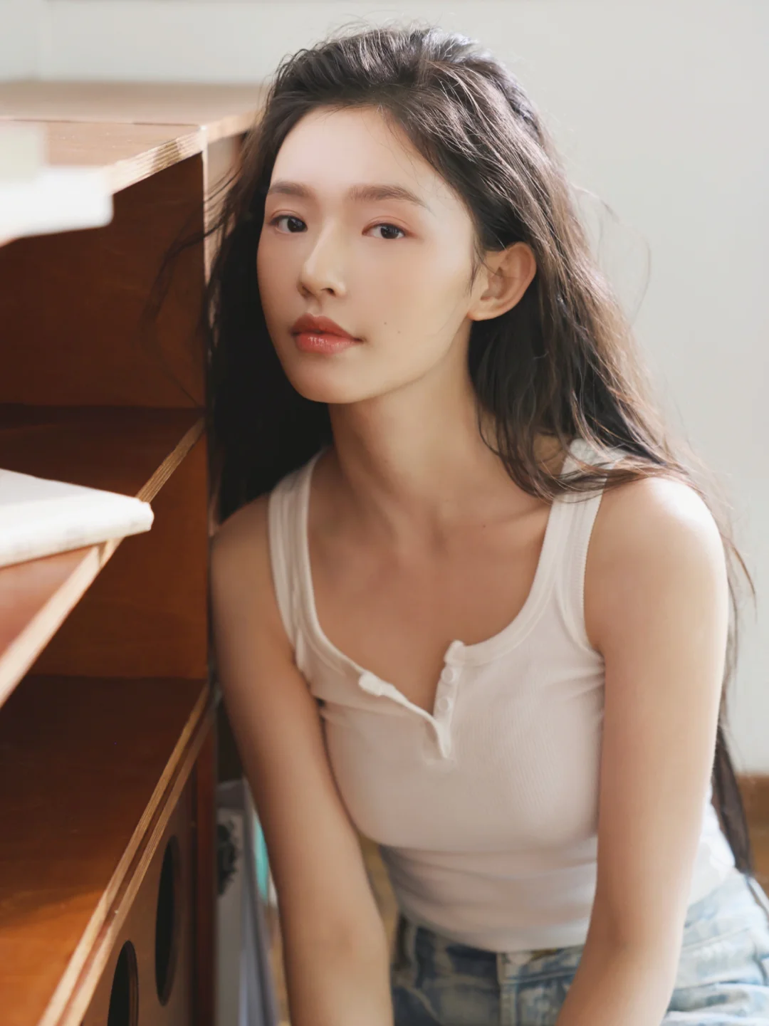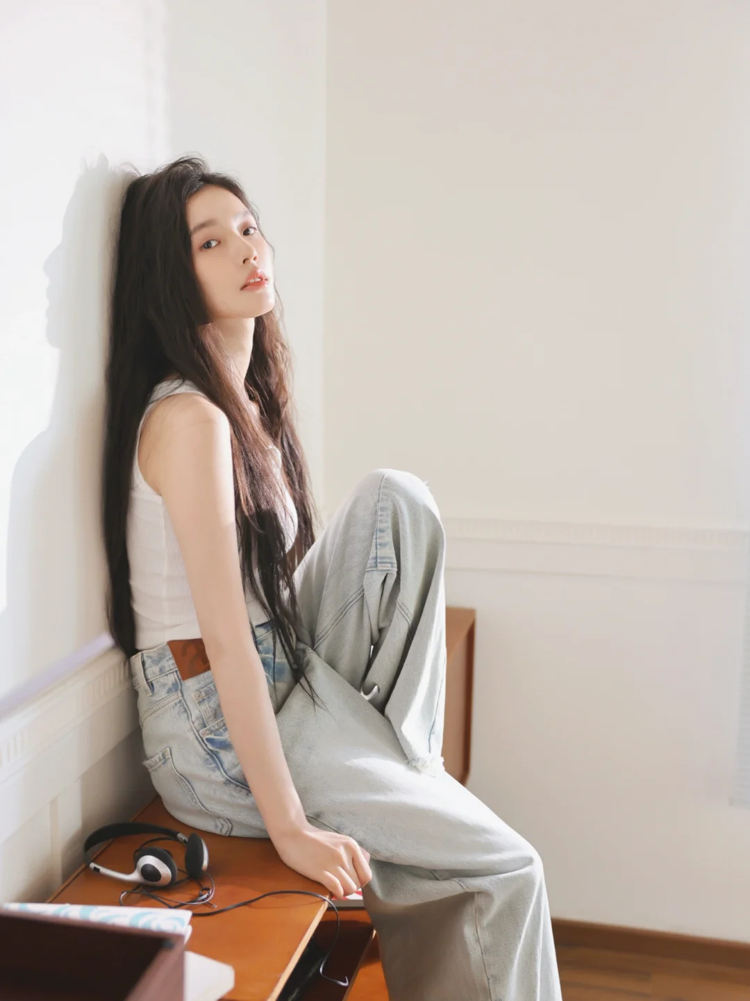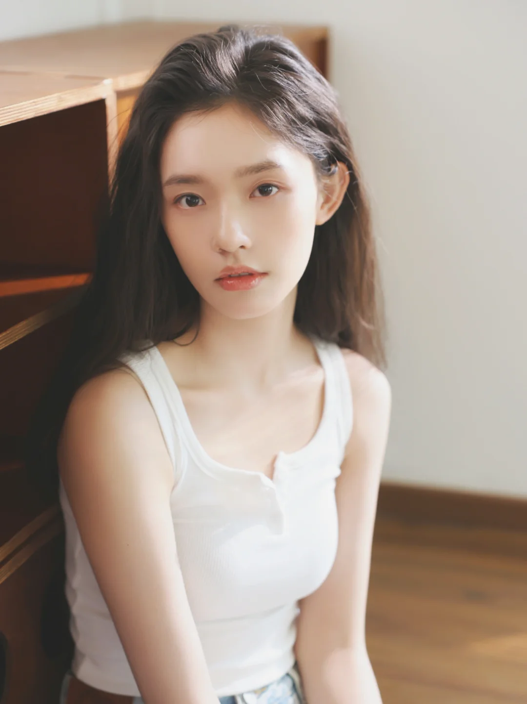 其实拍这类居家风格的写真就应该像这组照片一样,不用刻意化妆,保持真实的状态,后期稍微修一下皮肤质感,简单自然反而会有高级感。