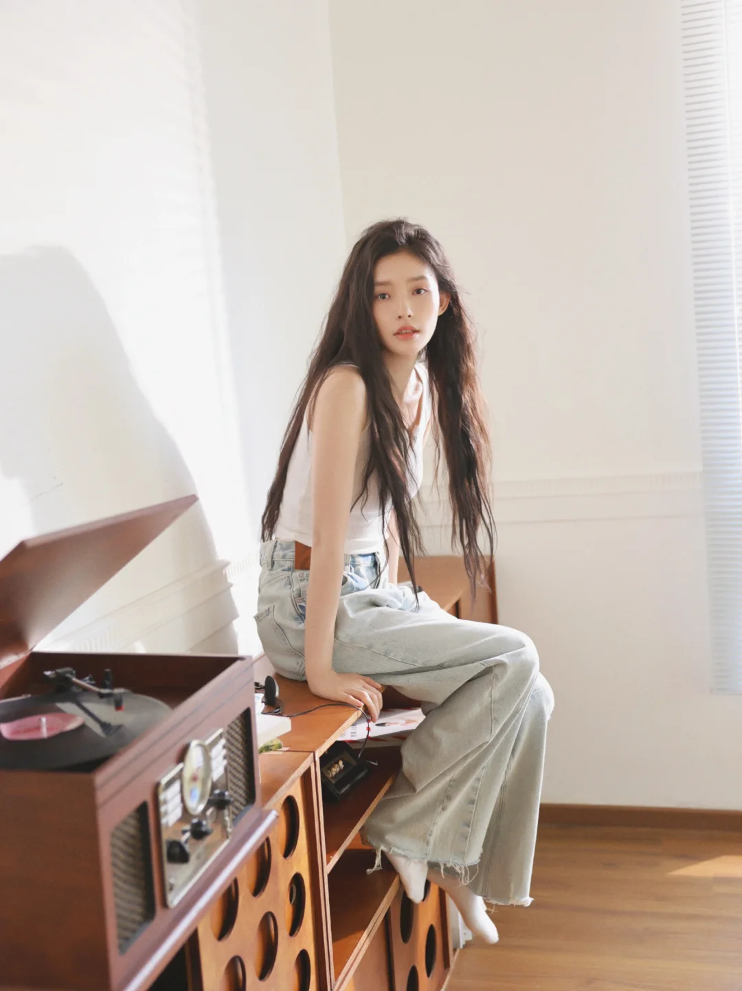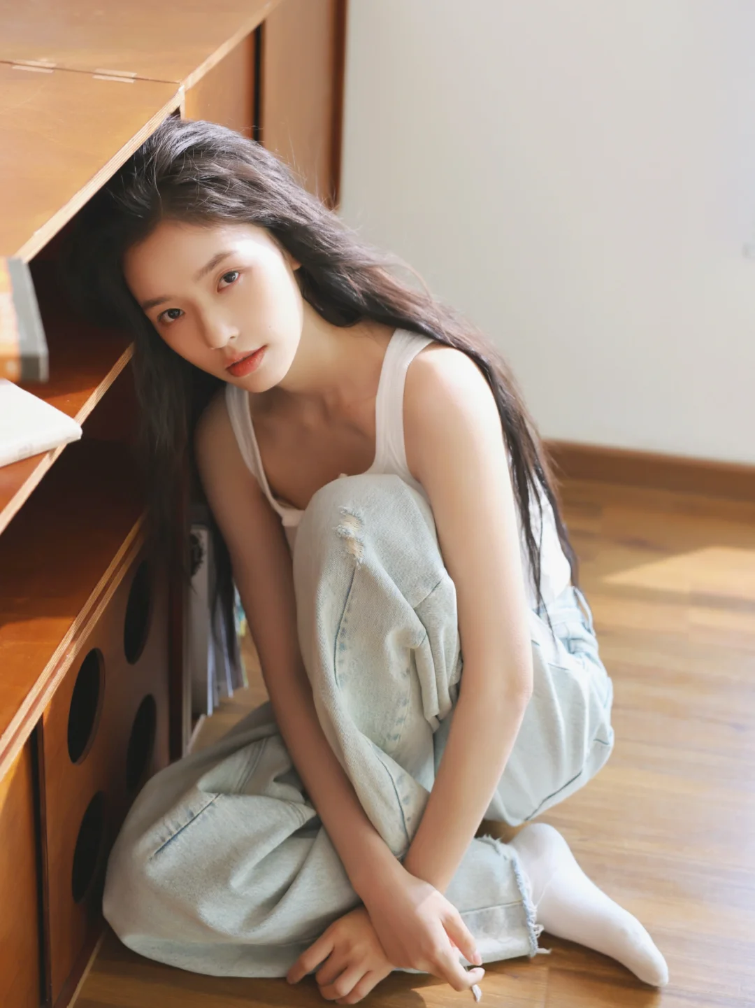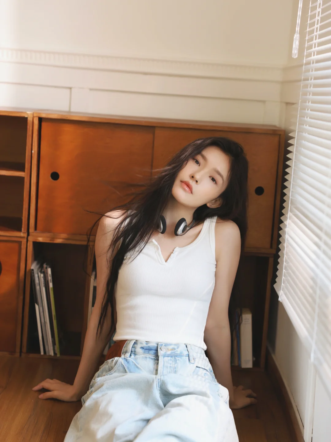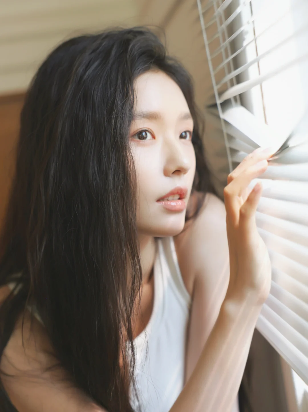 其实拍这类居家风格的写真就应该像这组照片一样,不用刻意化妆,保持真实的状态,后期稍微修一下皮肤质感,简单自然反而会有高级感。