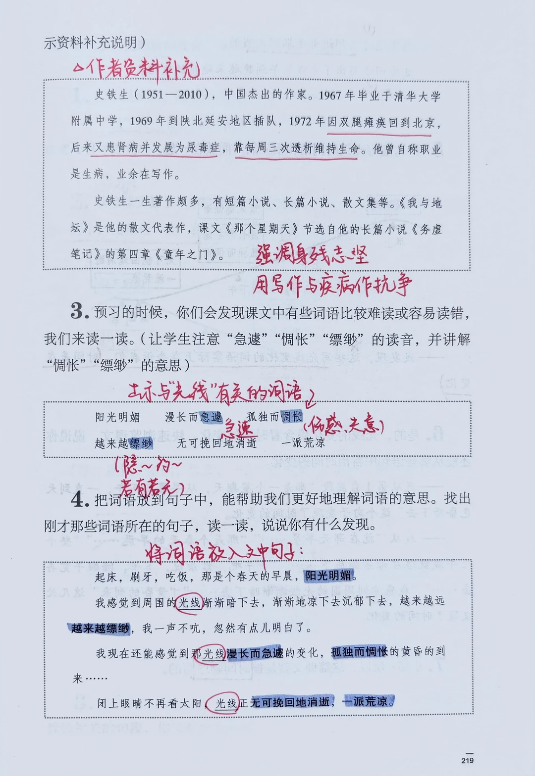 [一R]了解作者“史铁生”(强调他用写作与疾病作斗争)