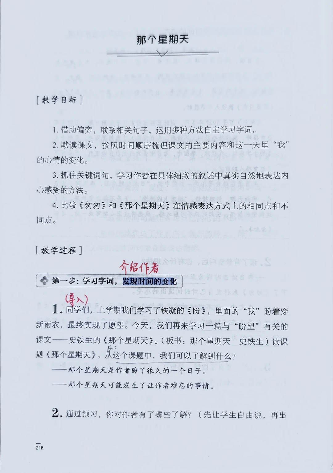 六下《那个星期天》极简备课及教学思路