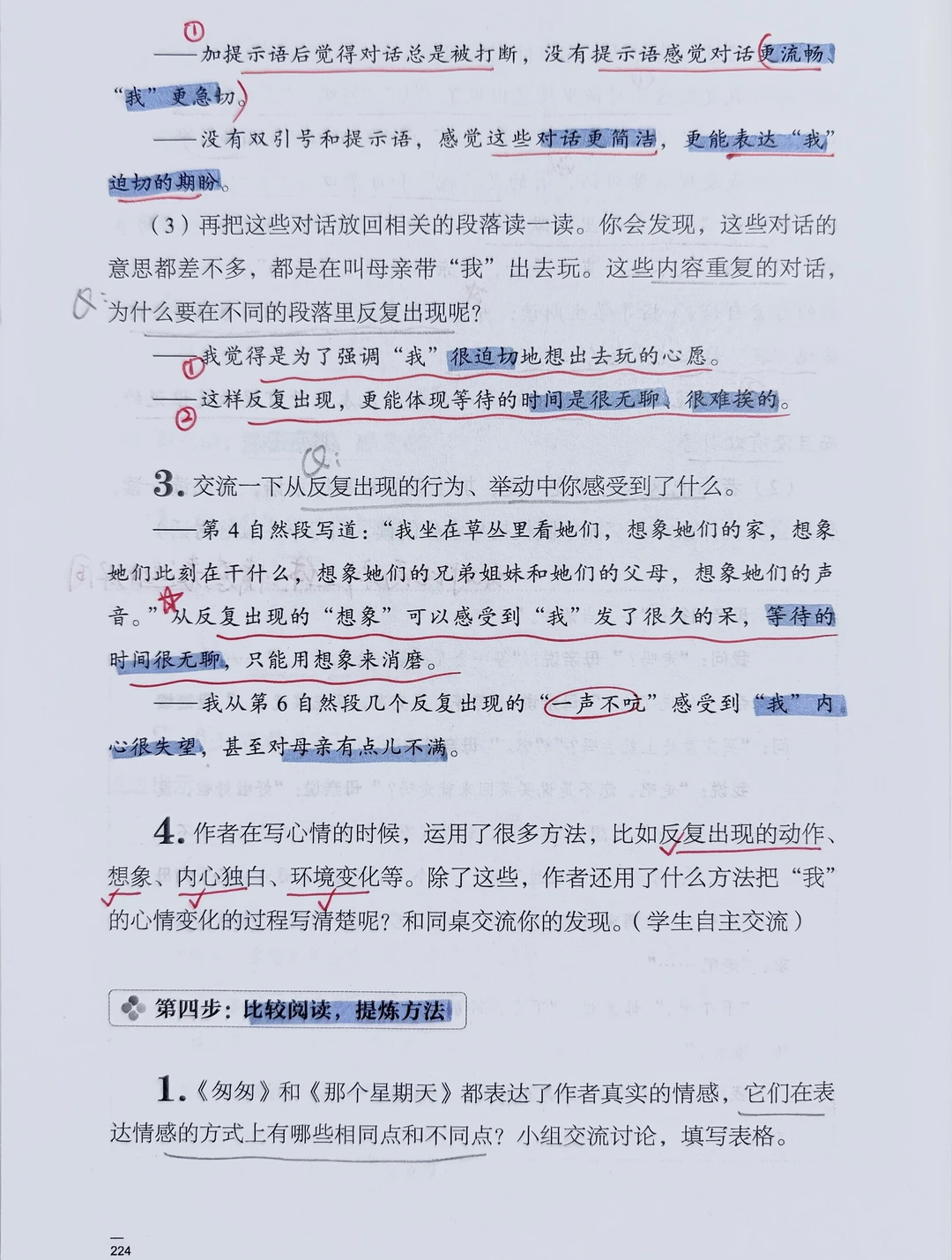研读了蒋老师的“指向语文要素”中的教学思路,结合课后习题,围绕五个活动展开教学: