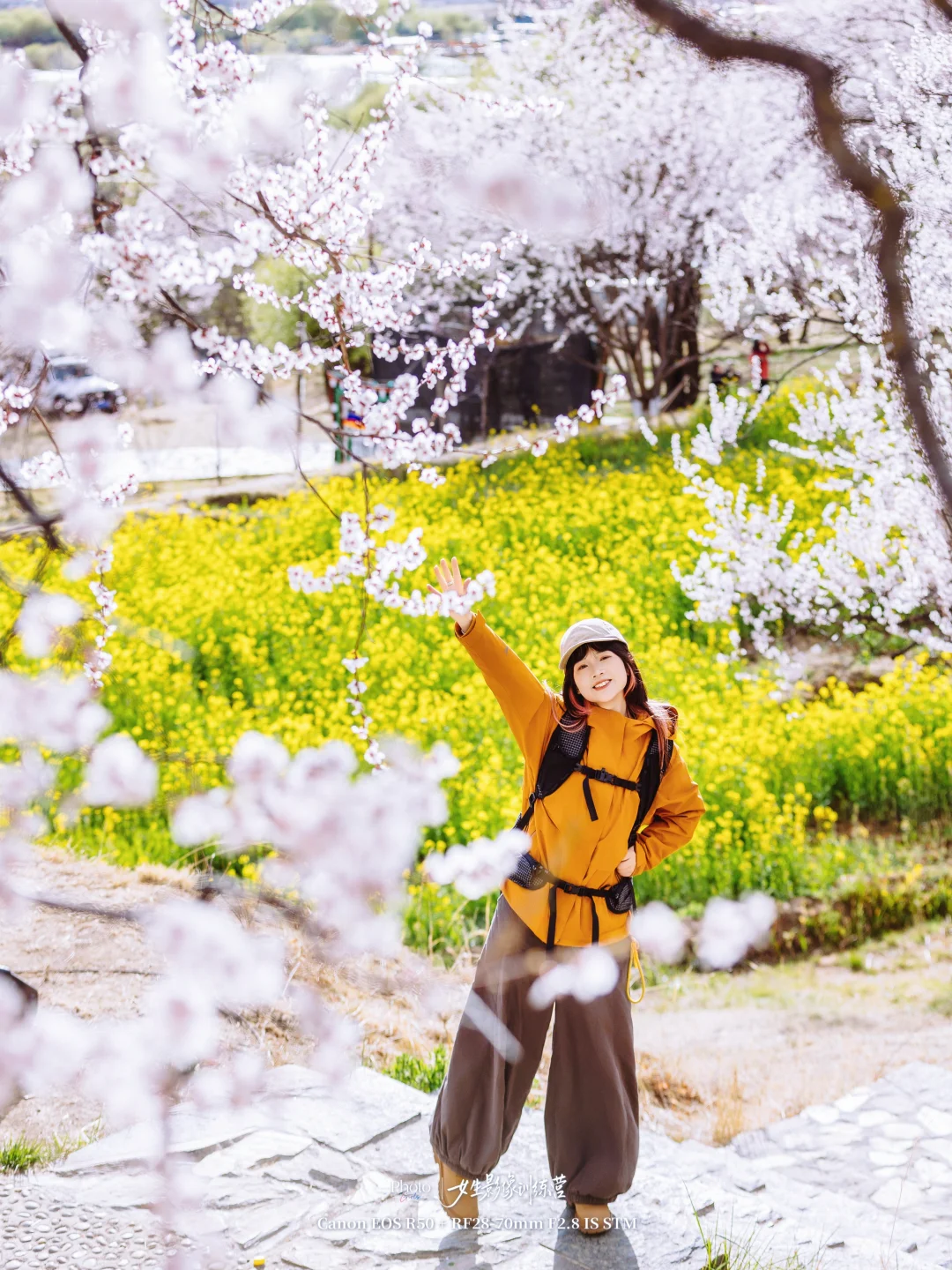 1️⃣摄影师高机位,俯拍,框架构图,那桃花做画框,超有氛围感