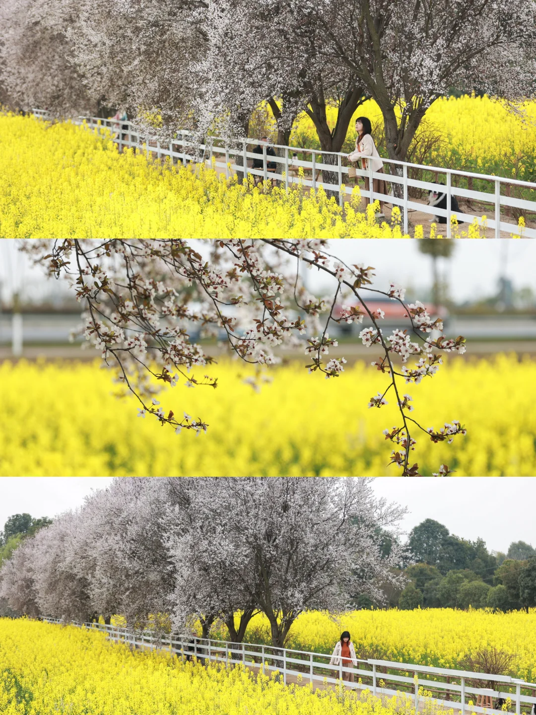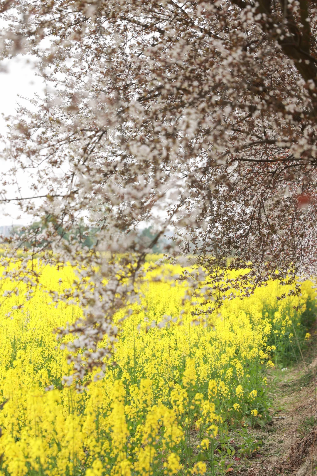发现了一片有白色花花🌸的红叶李和油菜花同时出现的场景