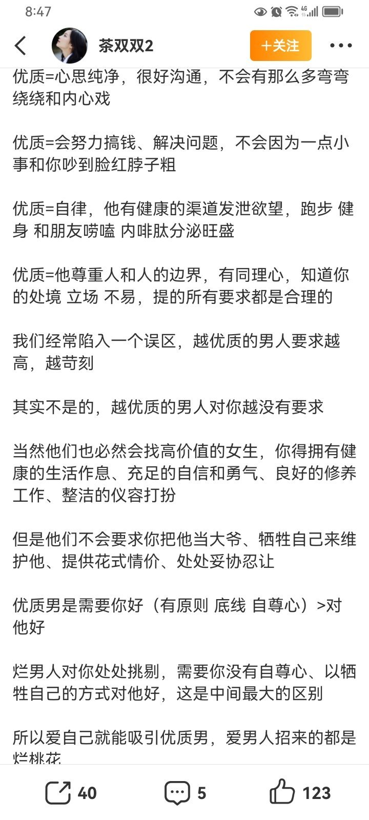 越优质的男人越好相处,只要你是高价值。只要你把时间花在自己身上,累积训练出自己的