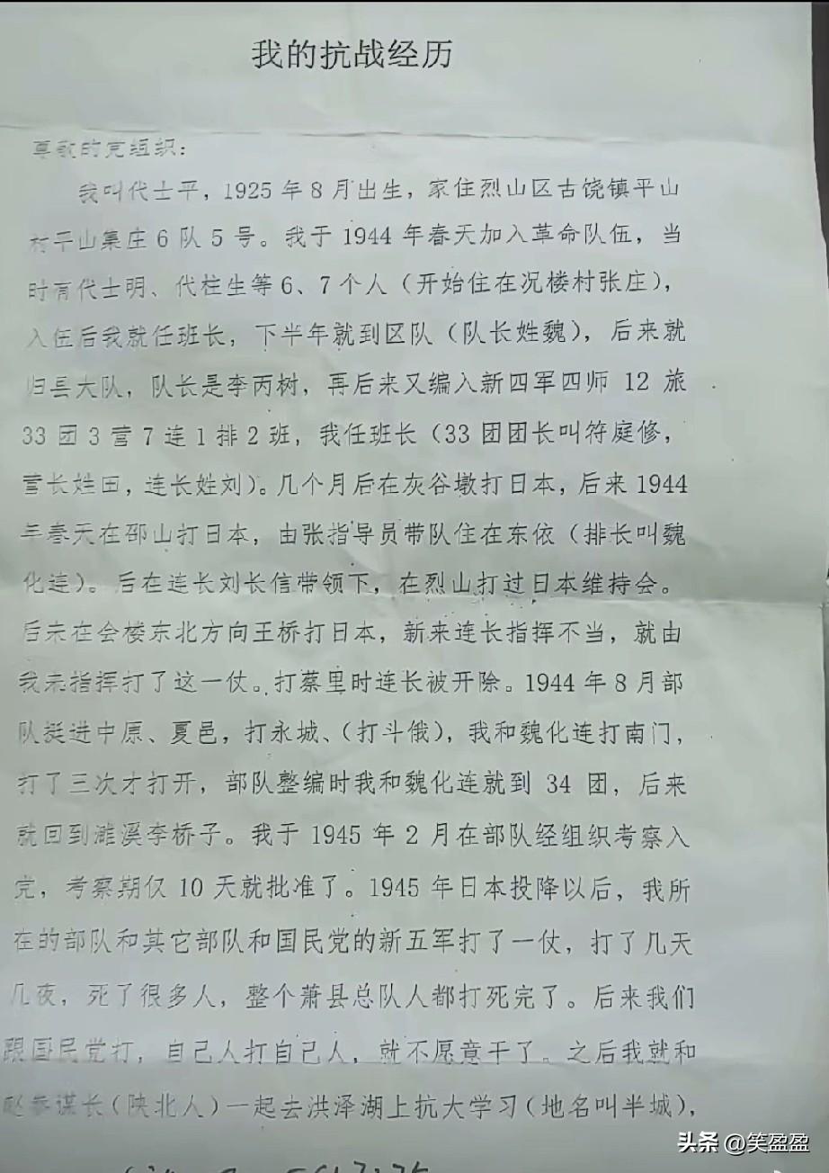 1946年冬回家探亲,部队却紧急撤离,找不到部队,有家又不敢回,被迫到上海谋生。解放后返乡,终生务农。
