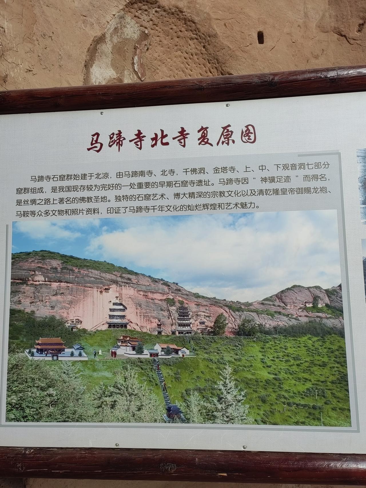 马蹄寺又称普光寺,始建于十六国北凉时期(397–439年),距今已有1600余年历史,由七大石窟群组成(金塔寺、千佛洞、南北马蹄寺、上中下观音洞),因“天马留蹄印”的传说得名,与敦煌莫高窟、瓜州榆林窟并称“河西佛教圣地三大艺术宝窟”。不过它最著名的是三十三天石窟(北寺),这是一座比山西悬空寺更惊险刺激的石窟,但这正是吸引游客的地方,因此在路上司机一再叮嘱我们,到马蹄寺后马上去三十三天石窟,趁早上游客少爬完三十三石窟再去游览其它景点。