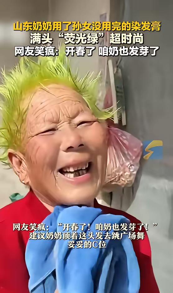 网友们看了都乐坏了,最火的一条评论就是“开春了,咱奶也发芽了”,还有人开玩笑说,老太这头绿头发,去跳广场舞绝对能稳站C位,比年轻人还时尚。