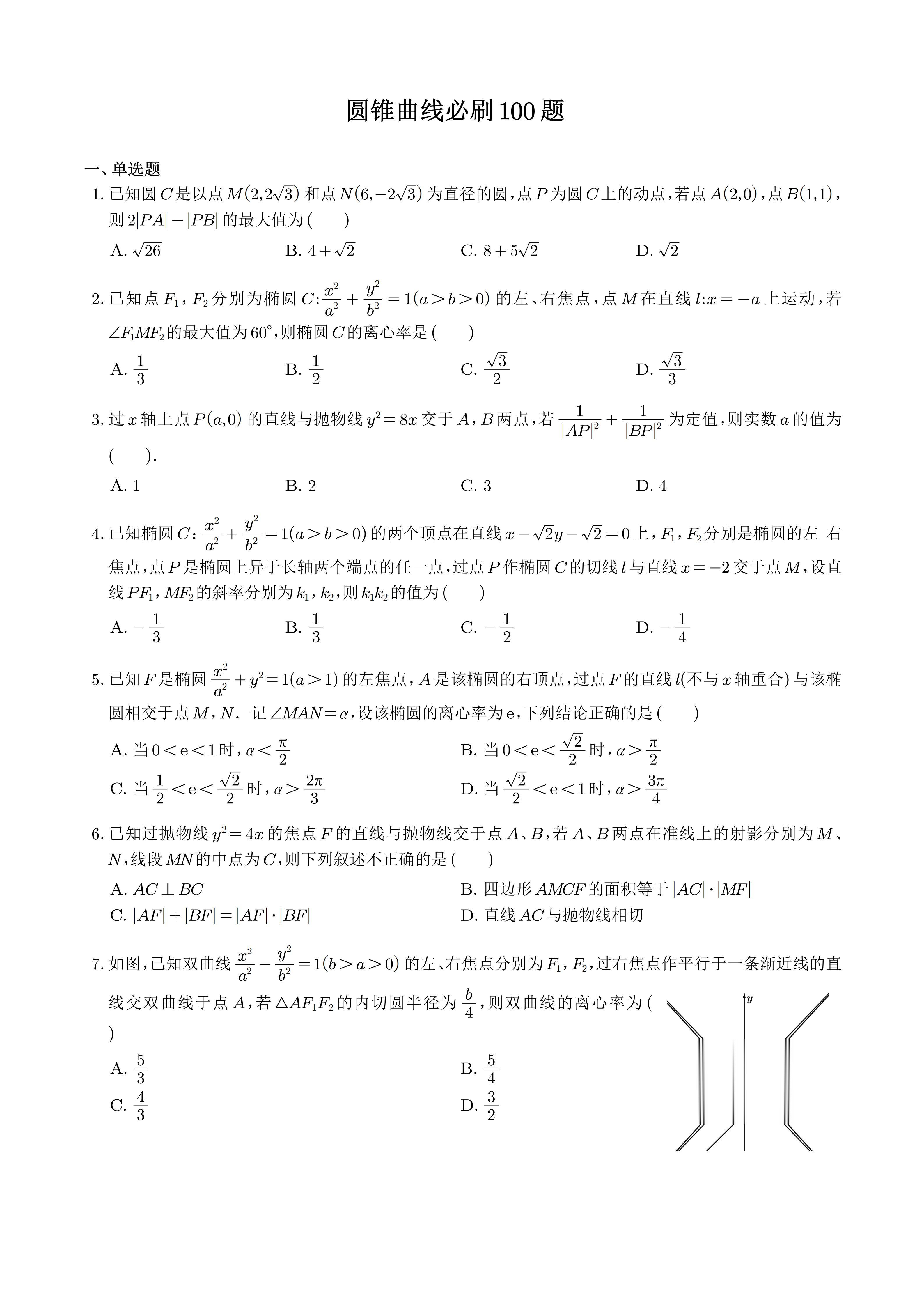 4月就做完这100题,不信圆锥曲线还学不。好,【77页】圆锥曲线高中必刷100题,可下载打印高清版
